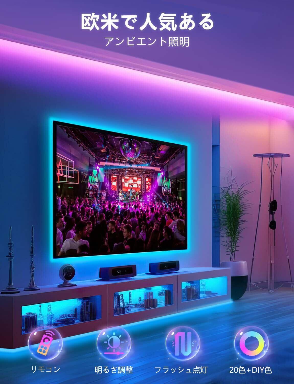 【人気商品】IKERY LEDテープライト20M RGB 両面テープ SMD5050 高輝度 PSE認証 4ピン 調光調色 ledテープ 間接照明 取付簡単 工具不要 入電電圧100V-240V