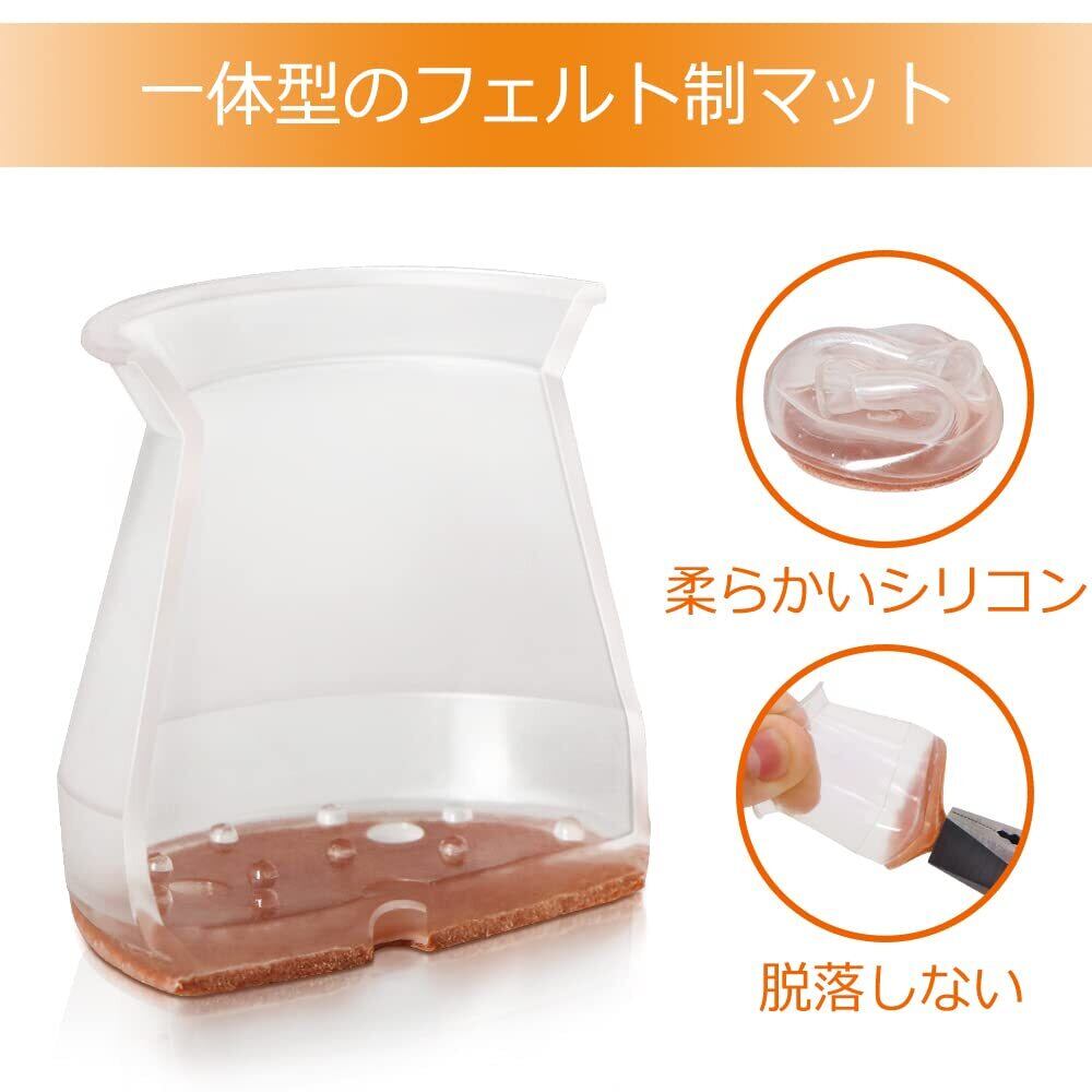 VIUME 椅子脚カバー 椅子あしキャップ シリコン クリアー 騒音 きず防止 滑り止め レフィル付きフェルトシート 丸脚 角脚兼用 16個セット 円形 (透明)