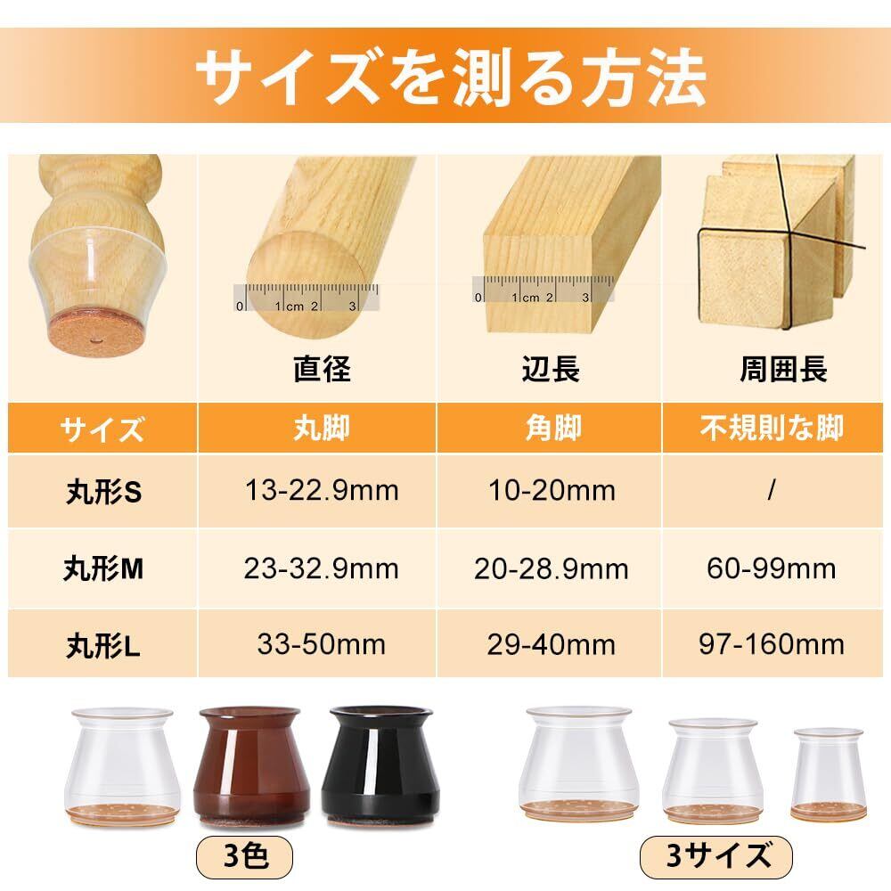 【中-サイズの範囲】丸脚直径(23-32.9mm)、角脚一辺(20-28.9mm)、不定形の場合、周囲長(60~99mm)に対応します。ご注文の際は、お手持ちの家具の脚のサイズをよくお測りください。