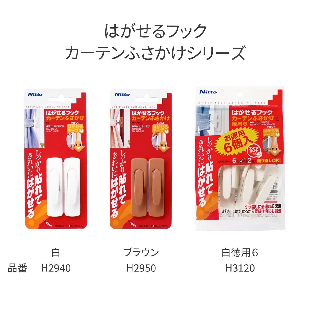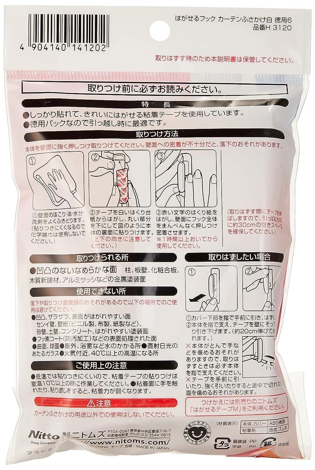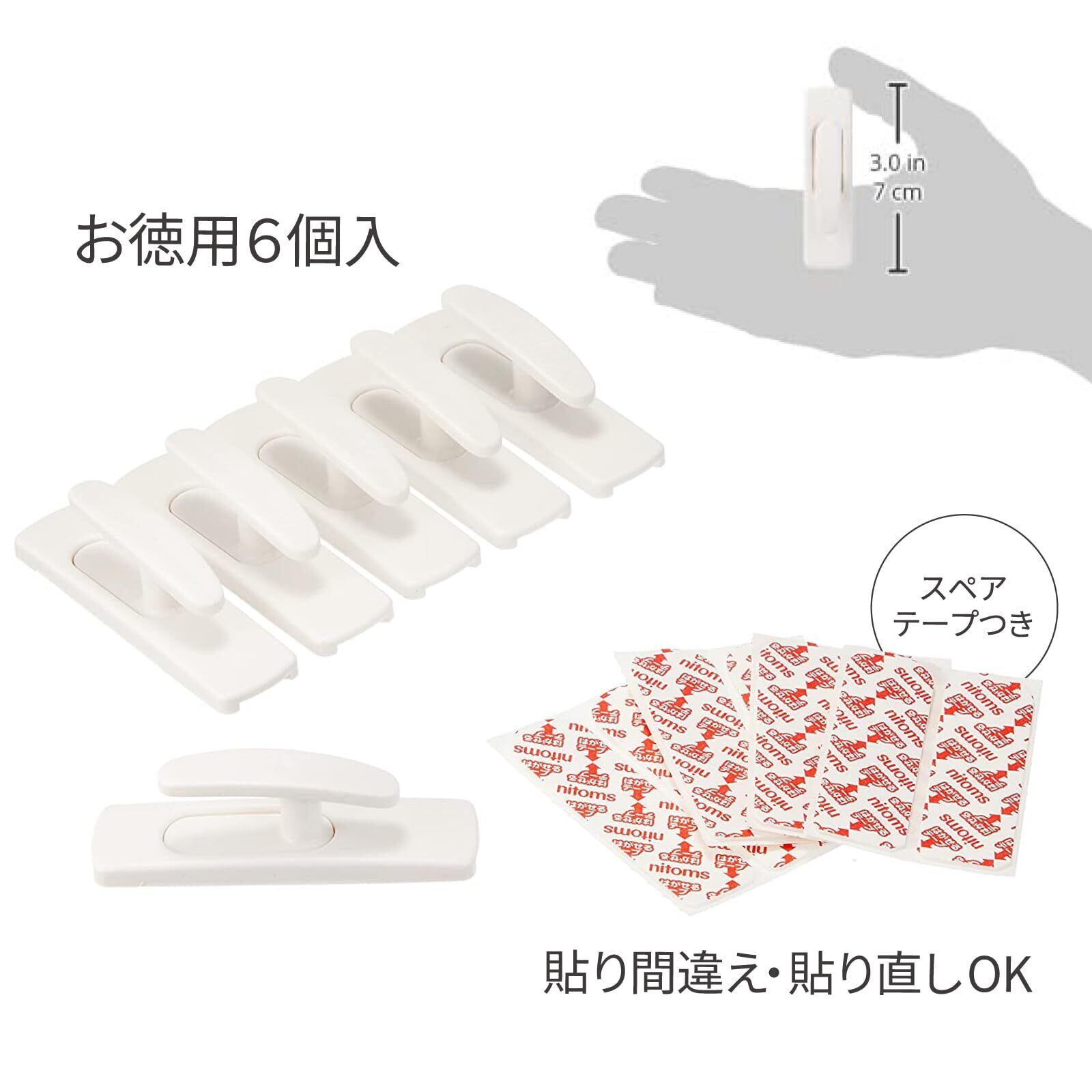 ニトムズ はがせるフック カーテンふさかけ 白 22mm×20mm×75mm 徳用6個入り H3120