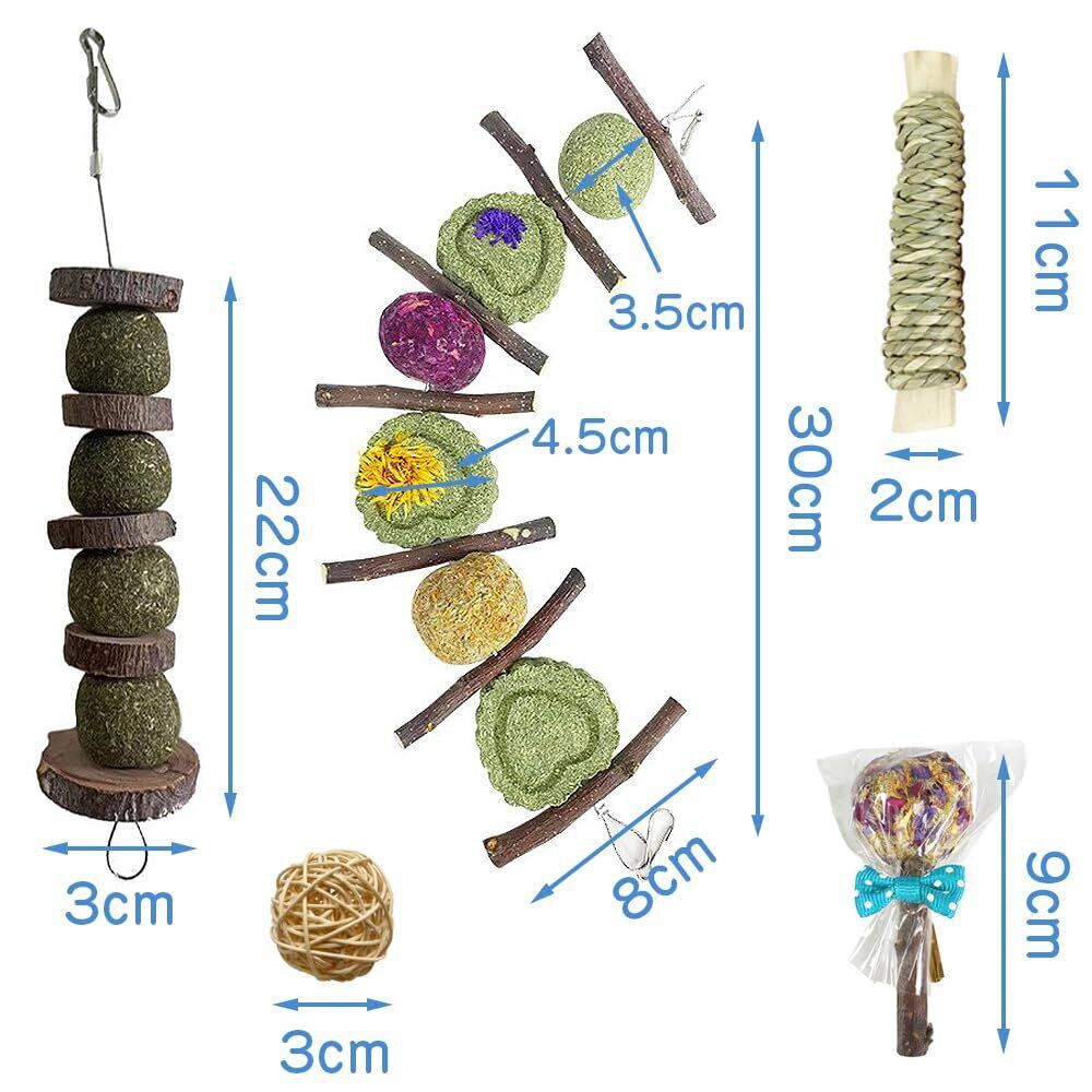 【セット内容】臼歯串2本、甘竹2本、草風味ロリポップ2個、セパタクローボール3個が含まれています。