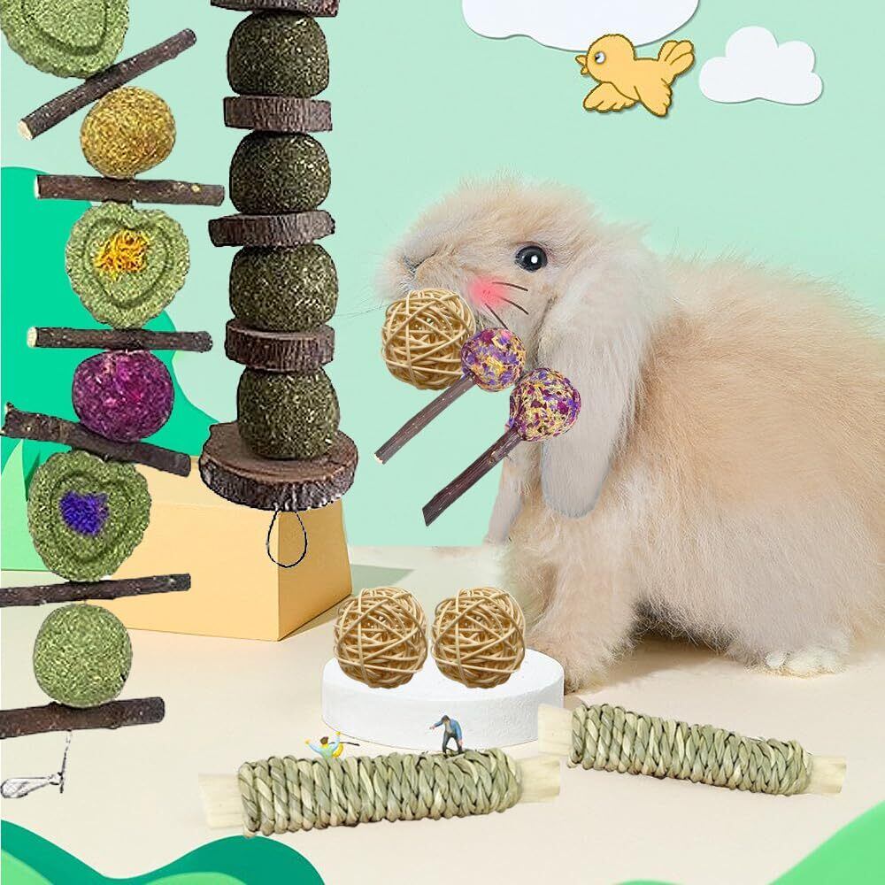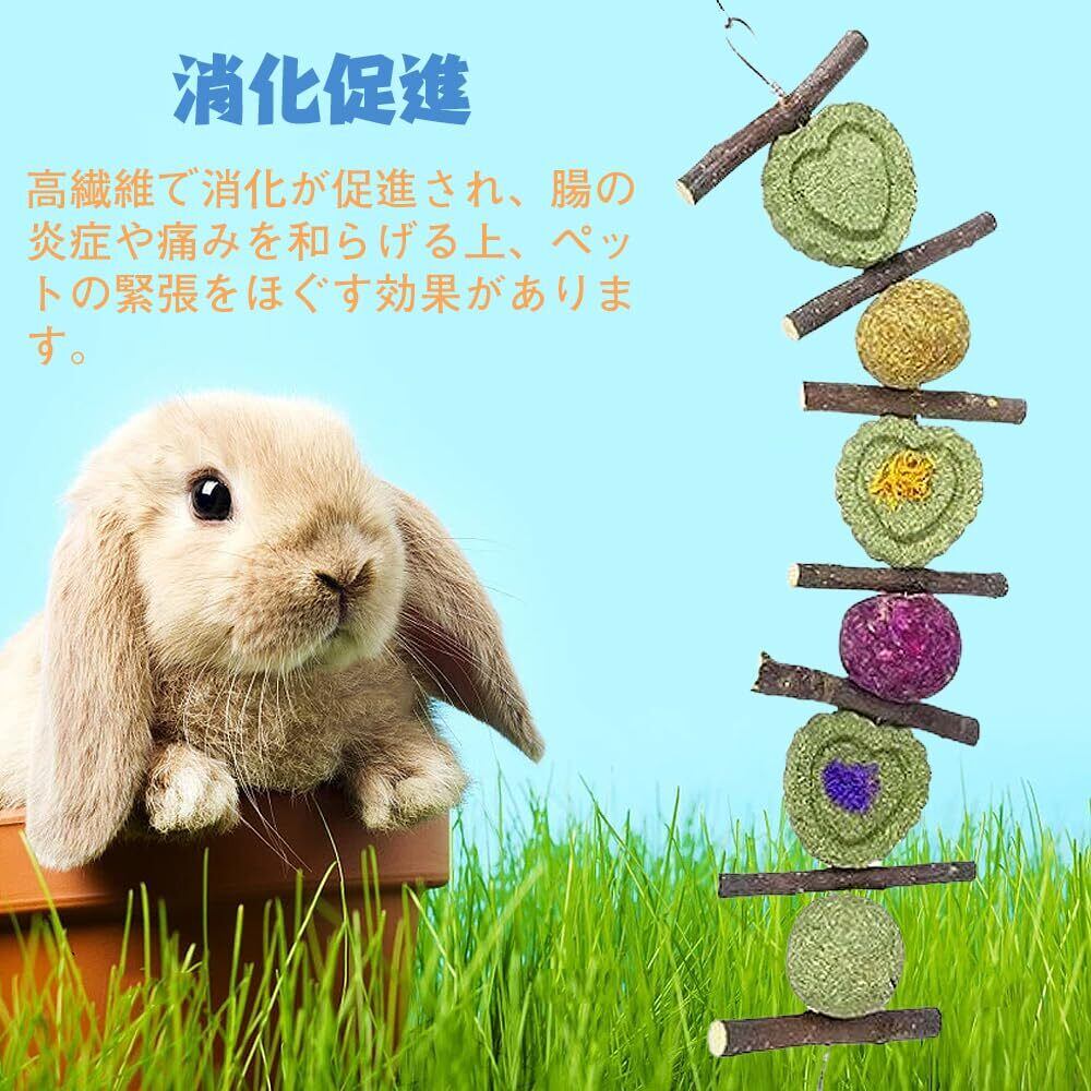 【全て天然素材】ティモシーグラスで作られており、ペットに豊富な繊維を提供します。ウサギや他の小動物の健康な歯を促進します。また、うさぎには歯磨き効果も期待できます。