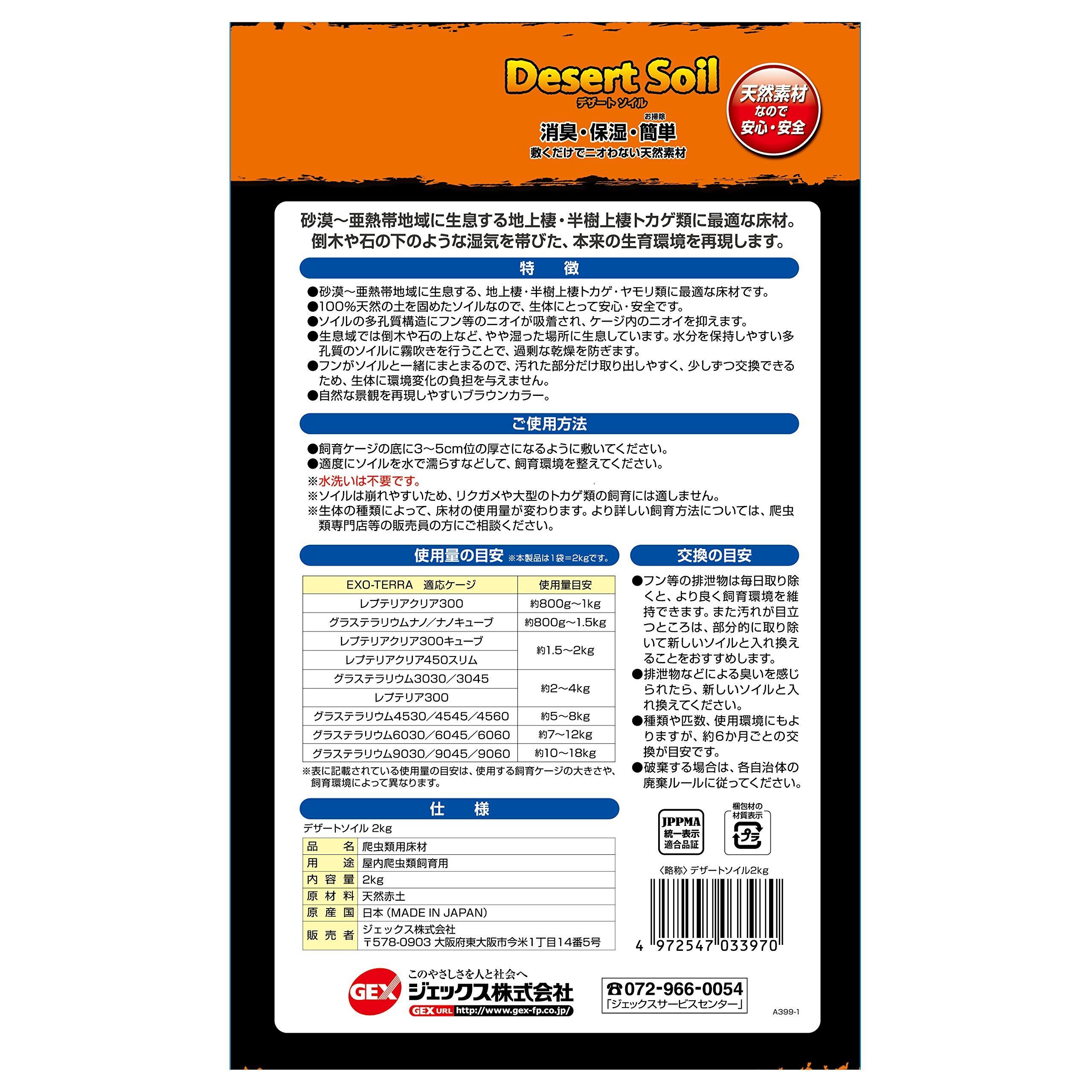 GEX EXOTERRA(ジェックスエキゾテラ) デザートソイル 2kg 爬虫類飼育用ソイル 消臭 保湿 お掃除簡単 天然素材