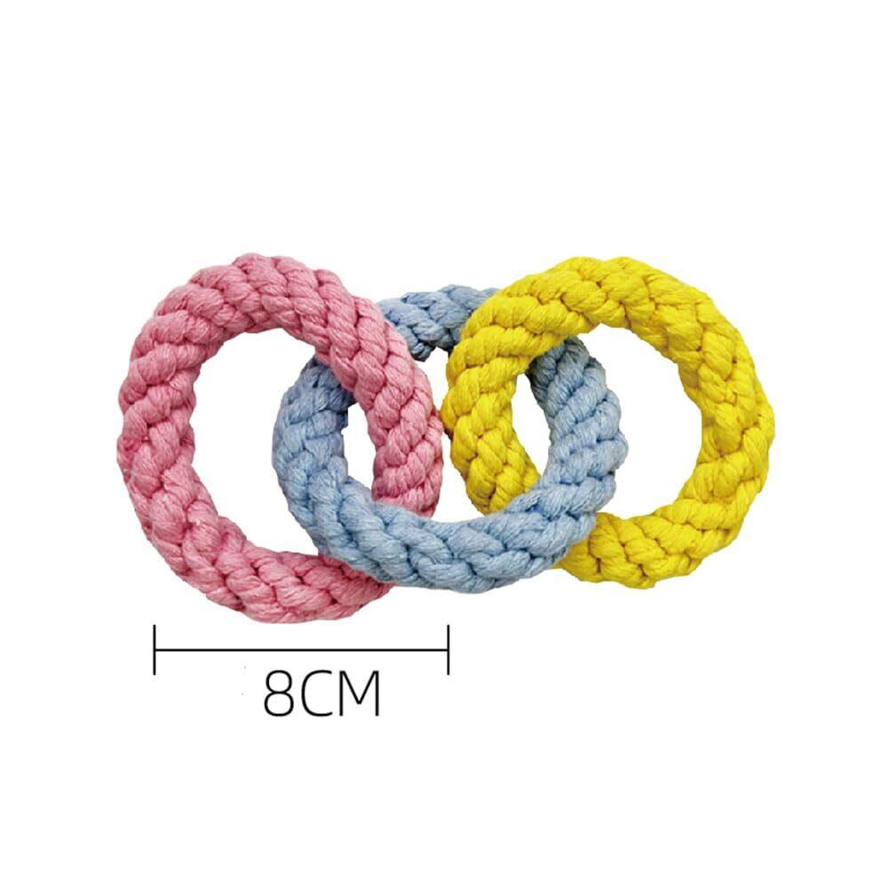 多彩な色: モモンガ おもちゃ 3色の組み合わせの円形ロープのおもちゃ、おもちゃは色鮮やかで、見れば見るほどかわいくなります。
