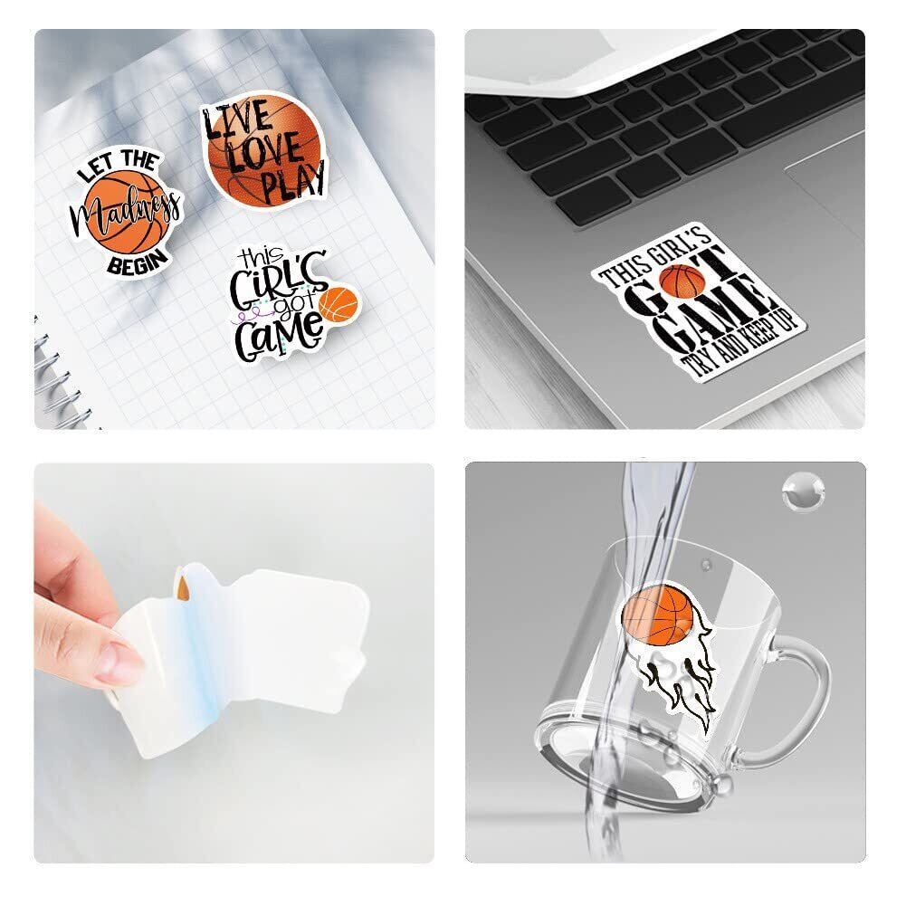 【仕様】およそ4-10センチのサイズで、写真と同じく、繰り返さない50枚のバスケットボールステッカーセットです。