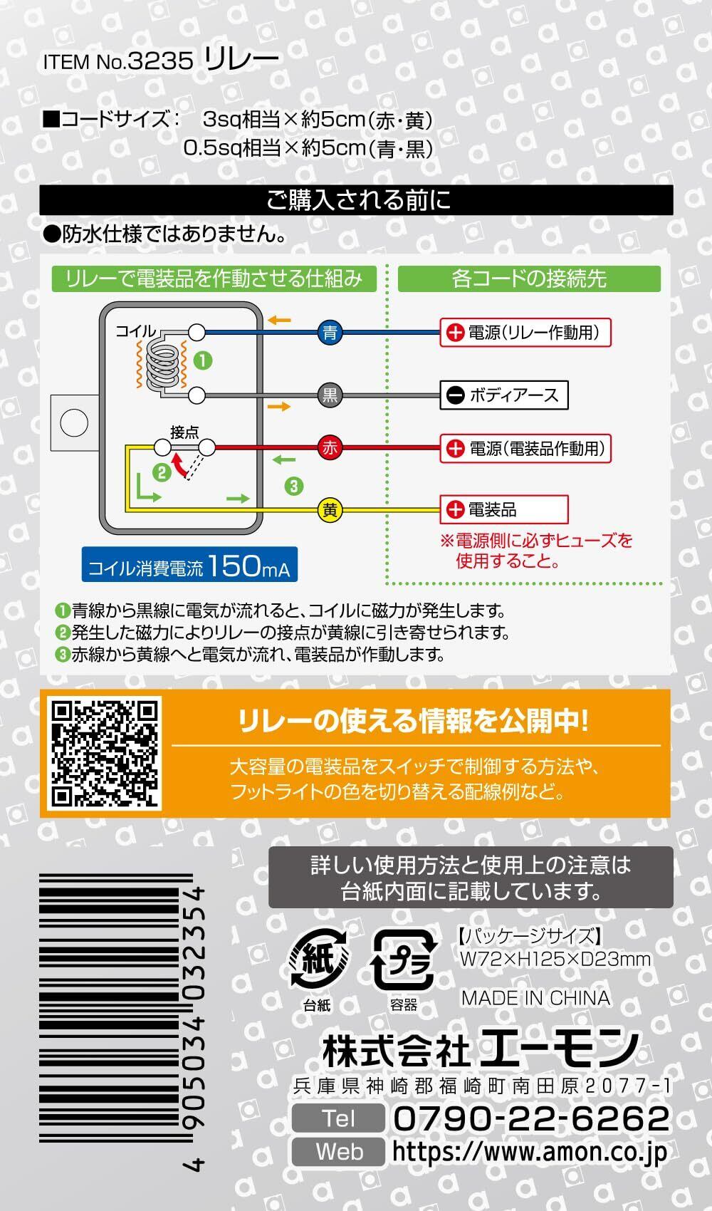 【在庫セール】エーモン(amon) リレー 4線(4極) DC12V・240W(20A) 3235