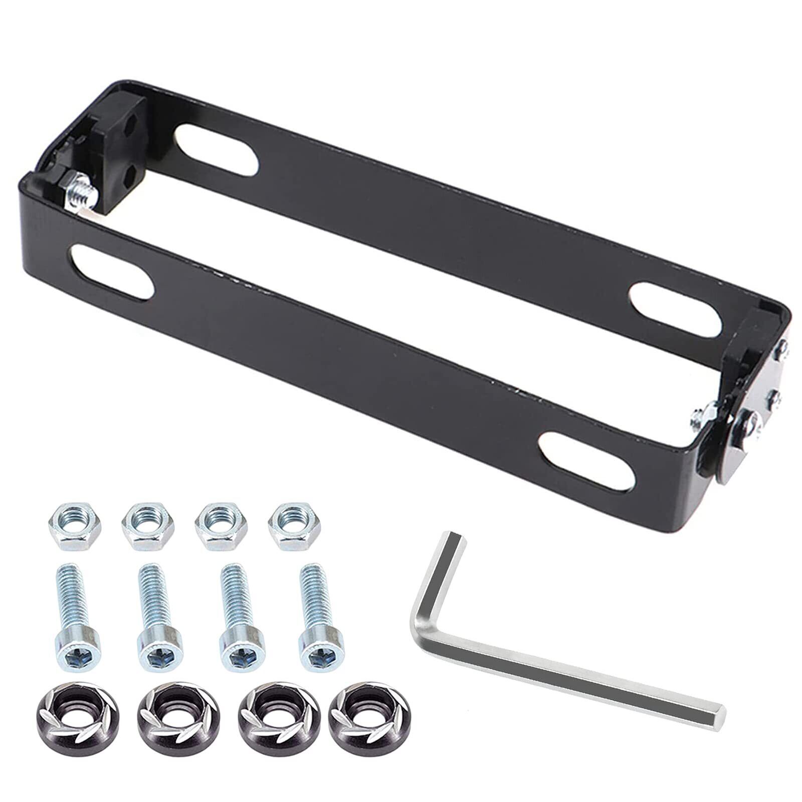 DFsucces バイク用 ナンバープレート ブラケット ステンレス製 簡単取付 汎用 ナンバーステー 180°角度調整 原付 含ネジとレンチが (ブラック)