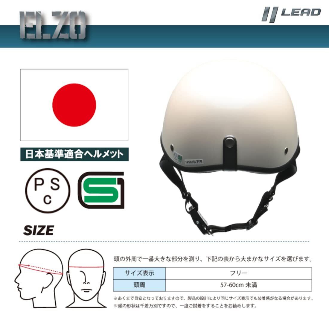 LEAD リード工業 ELZO ハーフヘルメット フリーサイズ パールホワイト