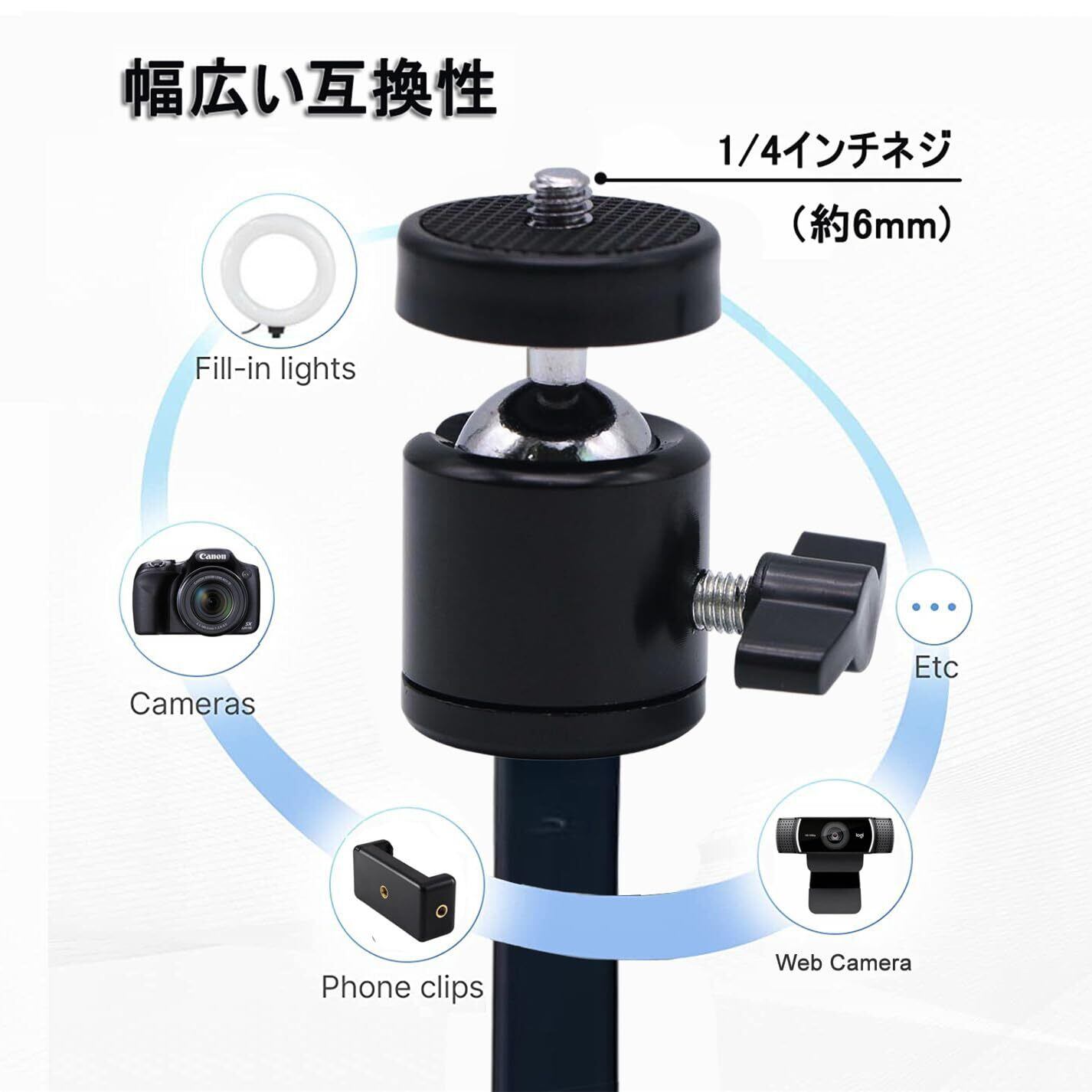 WEBカメラ卓上スタンド メタル雲台付き 1/4-20UNCインチネジ 角度・高さ調整可 メタル台座105mm (ブラック)