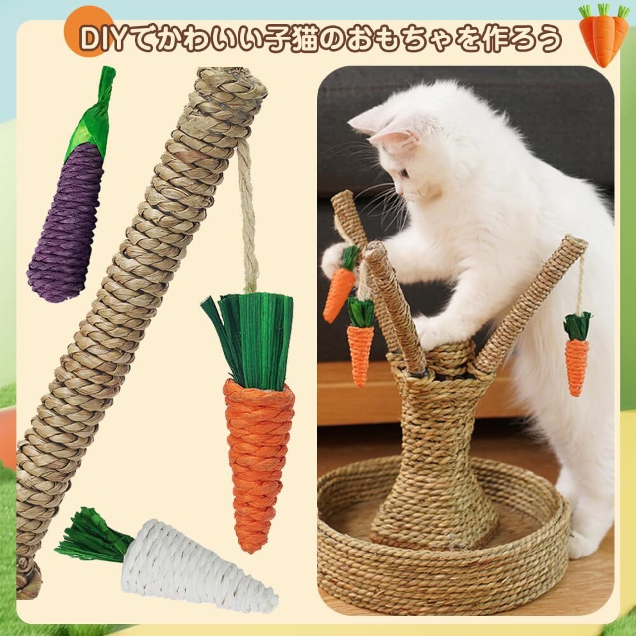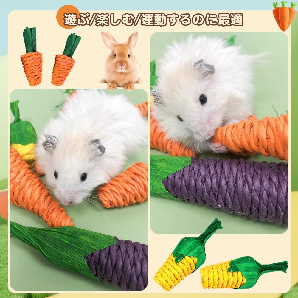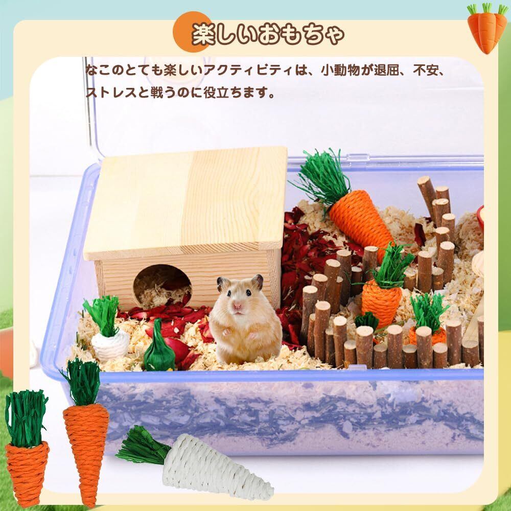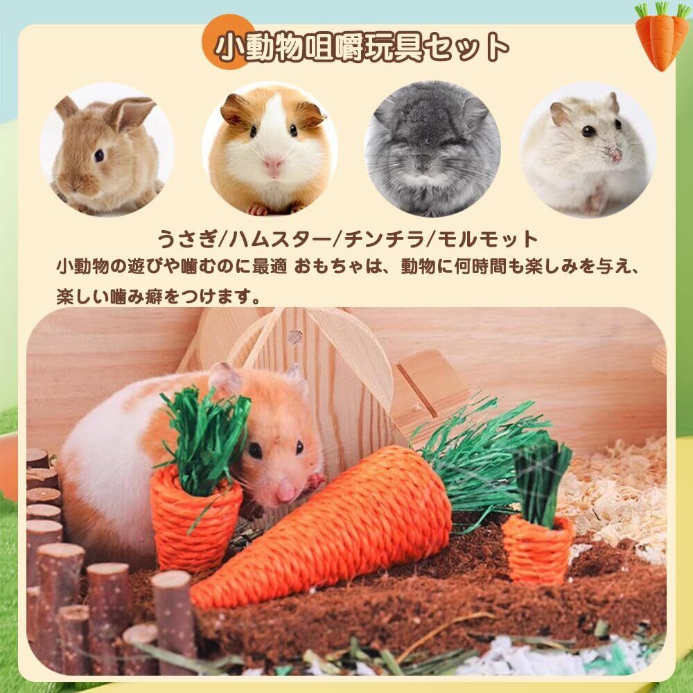 【新着商品】噛むおもちゃ 小動物用 5個セット 草編みの噛む おもちゃ 運動不足解消 ストレス解消 天然 ペット用品 ウサギ/チンチラ/ハムスター/モルモット/リス 小動物用の臼歯のおもちゃ ミニあそび道具(キャロット/白にんじん/とうもろこし/ナス) | allstore3