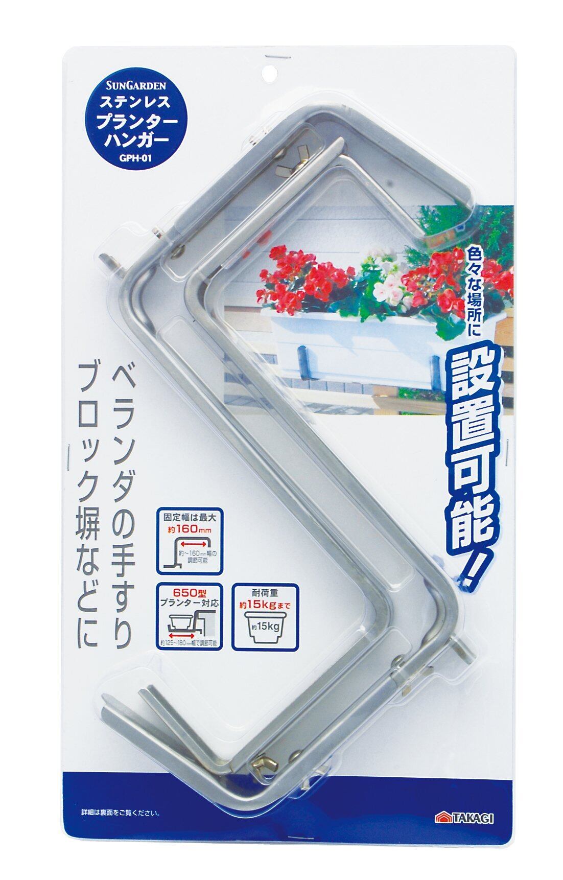 高儀(Takagi) Sun Garden プランターハンガー ステンレス GPH-01【650型のプランター対応で耐荷重15kg】プランタースタンド プランターハンガー プランター フック ハンギングプランター ガーデニング用品 ベランダ プランター引っ掛け フラワースタンド