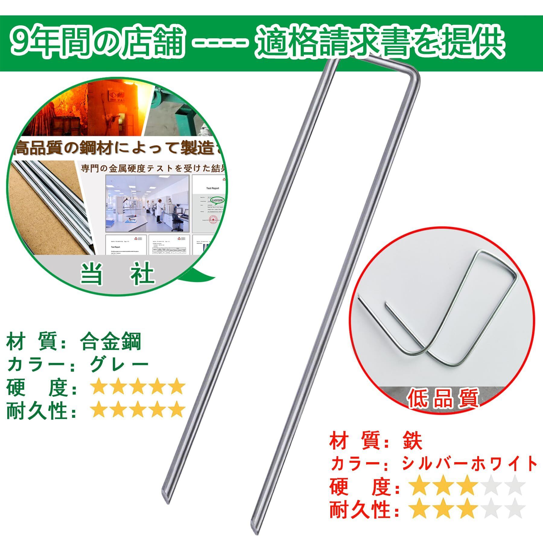 【日本での累計販売本数10,000,000本突破!!】雑草との戦いは大変でしょう。弊社の固定ピンは、さまざまなシートやマットを地面にしっかりと固定するのに最適な製品です。7年間日本での累計販売本数が10,000,000本突破しました。丈夫で錆びないのが決め手で購入を決める購入者は多くて、ほとんどのお客さんはリピートして購入しています。