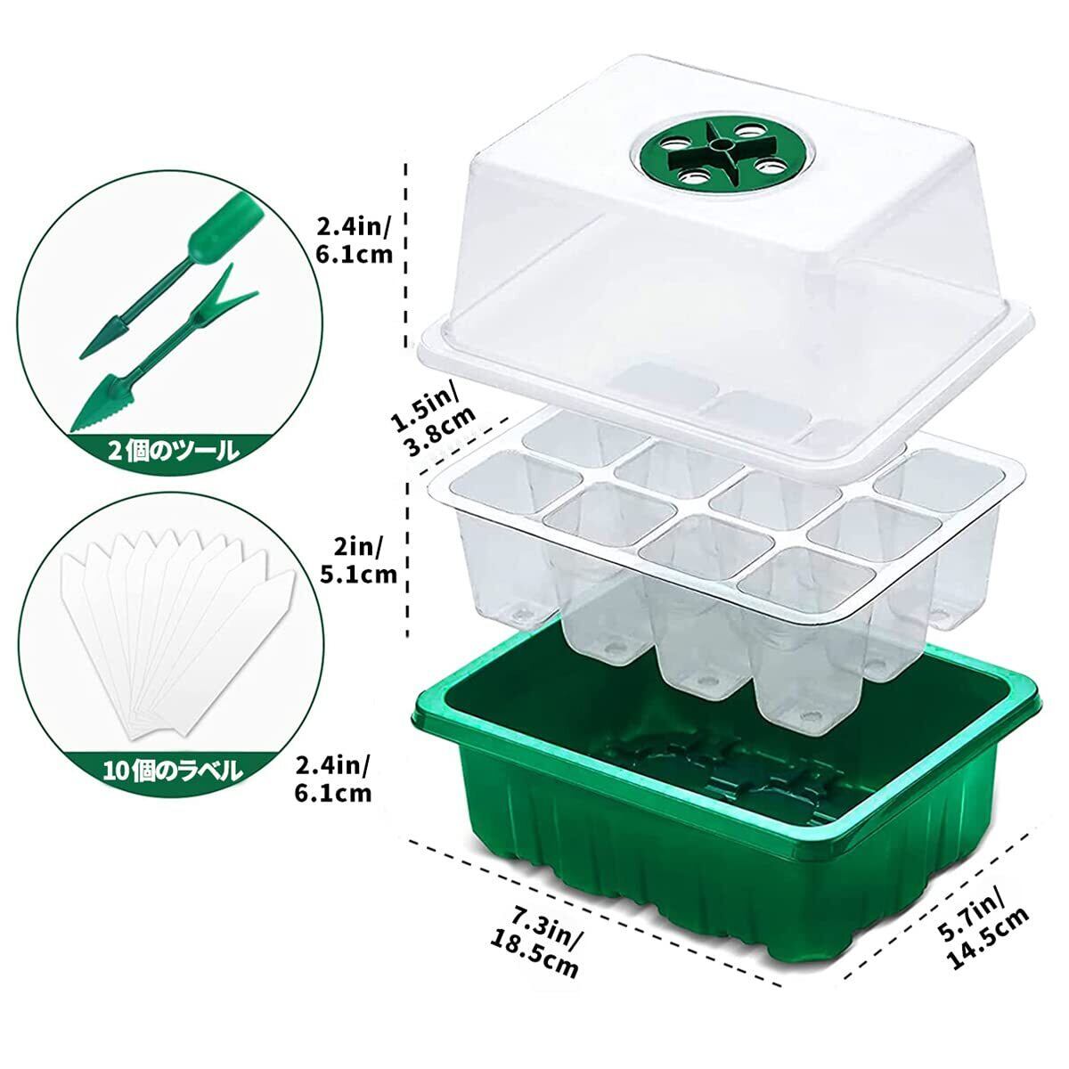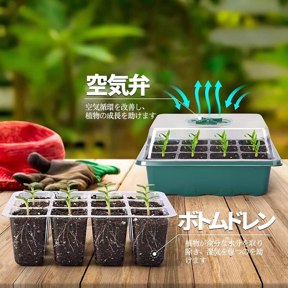 育苗ポット 5個セット 育苗箱 12穴 種子トレイ 発芽育苗セット 種まきハウス 苗箱 種まき器 育苗ボックス 透明カバー 便利性 通気性 野菜栽培 多肉植物 家庭菜園 園芸植栽庭園 プラグトレイ