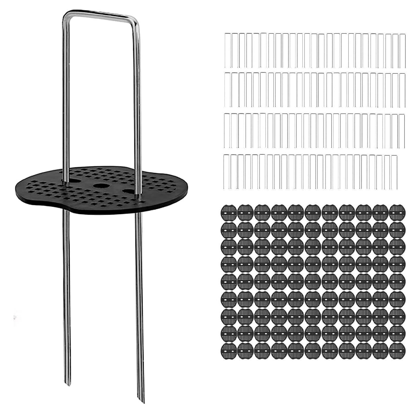 100本セット Uピン杭 黒丸付き 人工芝 押さえピン u字ピン コ型ピン 防草シート 除草シート 家庭菜園 園芸用品 園芸資材 用品 (15x3x15)