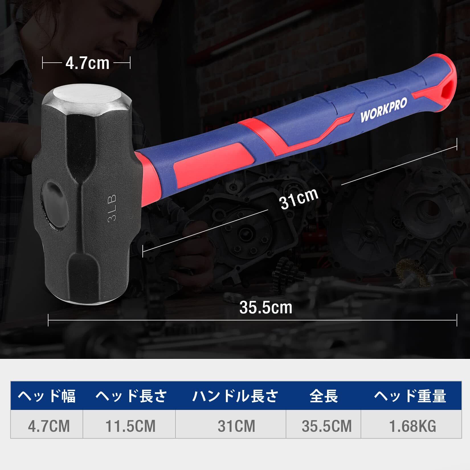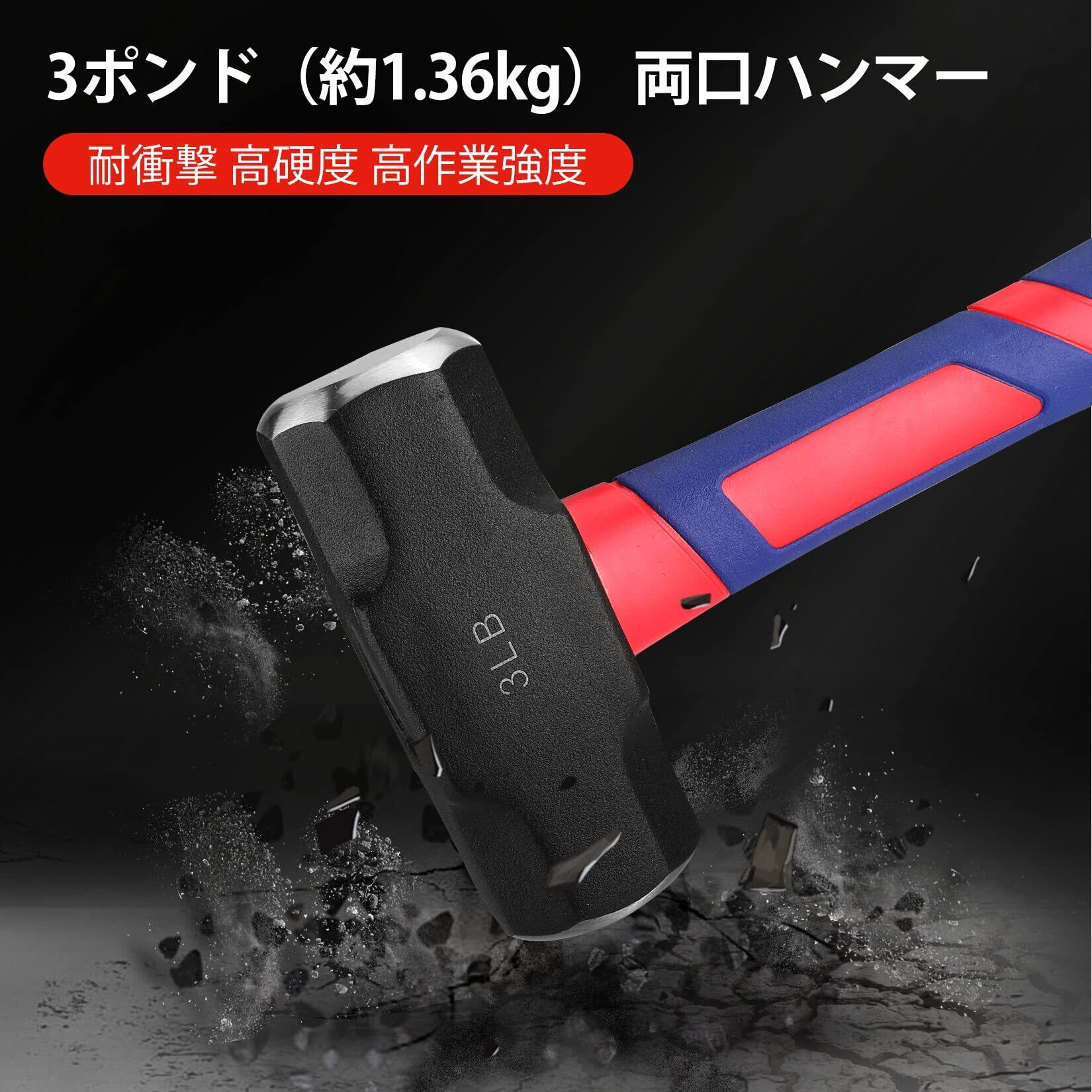WORKPRO 両口ハンマー 石頭ハンマー 八角玄能 グラスファイバー柄 約1.36kg(3LB)鉄工 · 金工 · 木工 土木建築 解体作業 キャンプ用