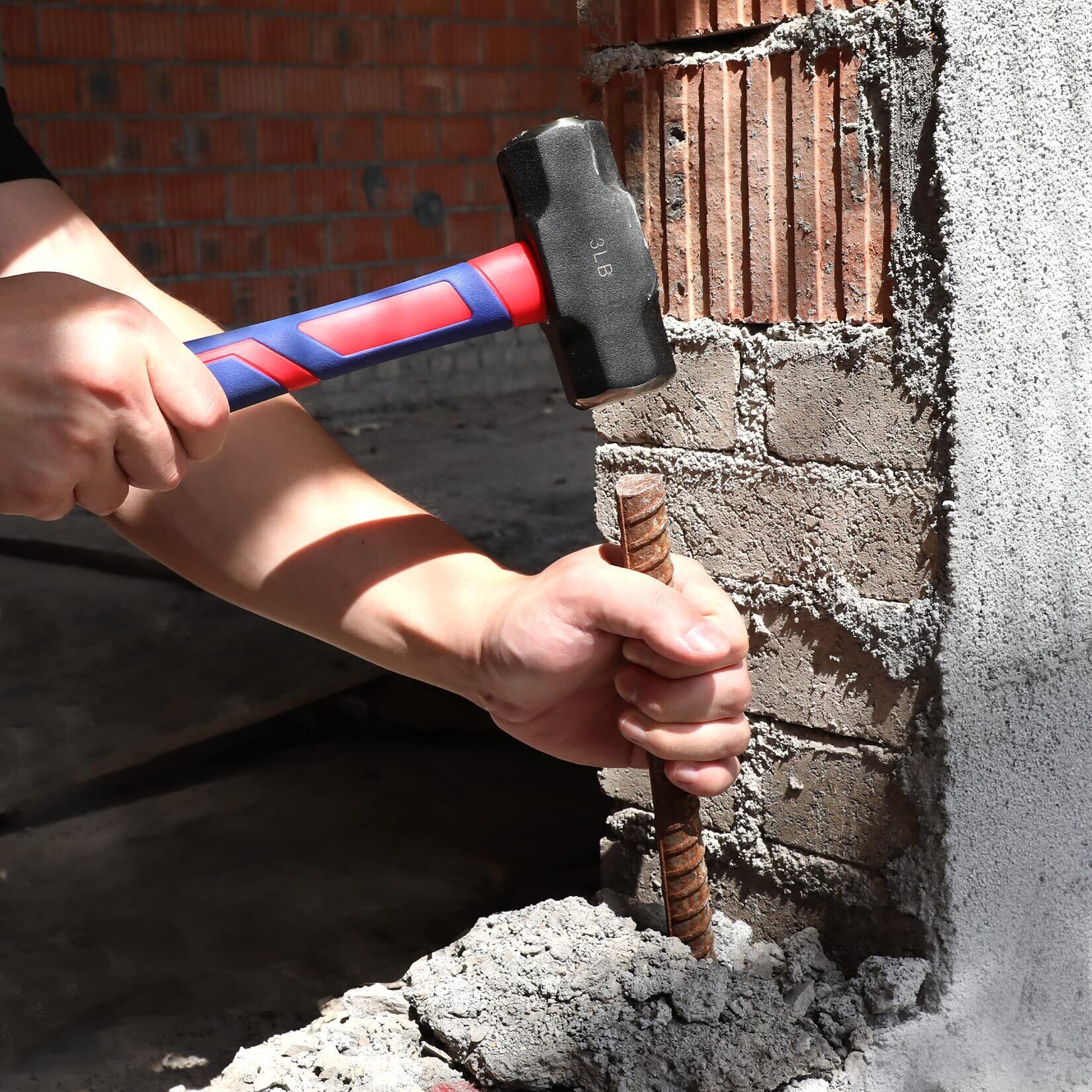 【多目的ツール】両口ハンマーは、障害物の除去、岩石の除去、石工、金属加工、またはチゼル杭の打設に、家庭装飾や産業用からキャンプまであらゆる用途に使用できます。ご注意:保護メガネ、ヘルメット、軍手などを着用して下さい。