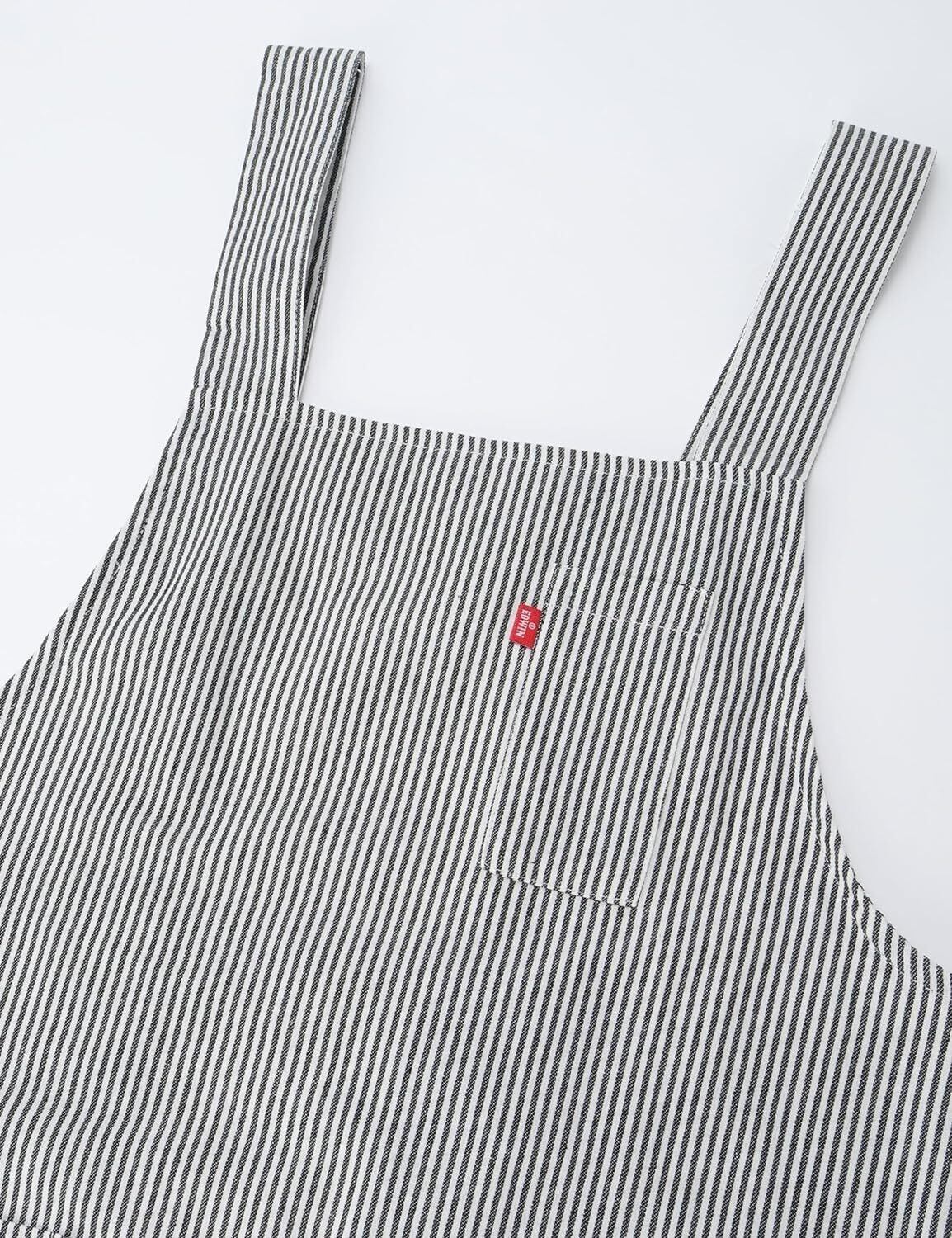 【2022最新】[エドウィン] エプロン 二段階調節可能な後ろ腰ボタン ヒッコリー H型 両サイドポケットペン差し付 ブラック L