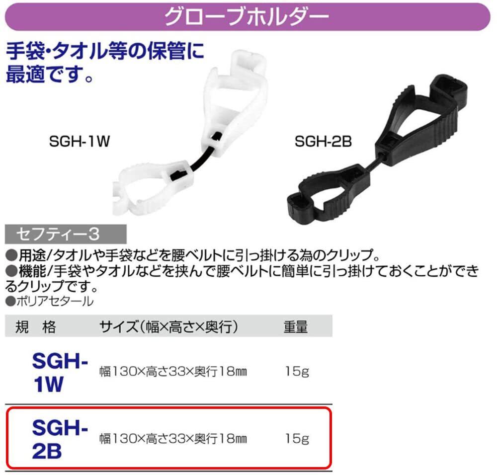 セフティー3(Safety-3) グローブホルダー ブラック SGH-2B