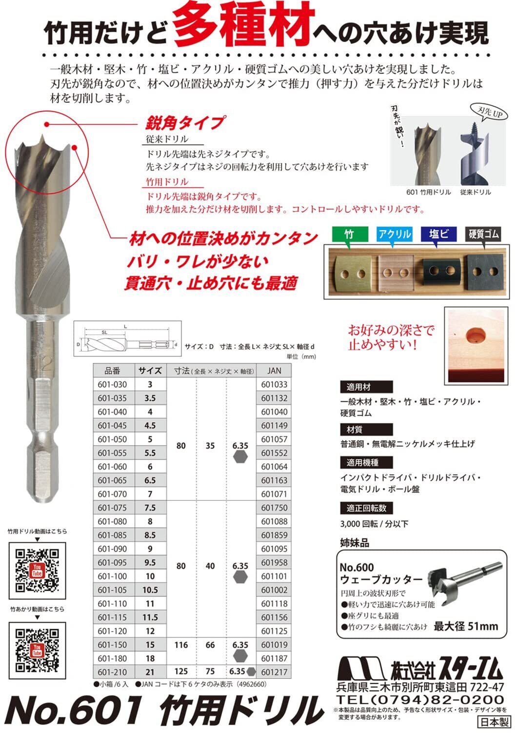 【人気商品】スターエム 601-100 竹用ドリル 10mm