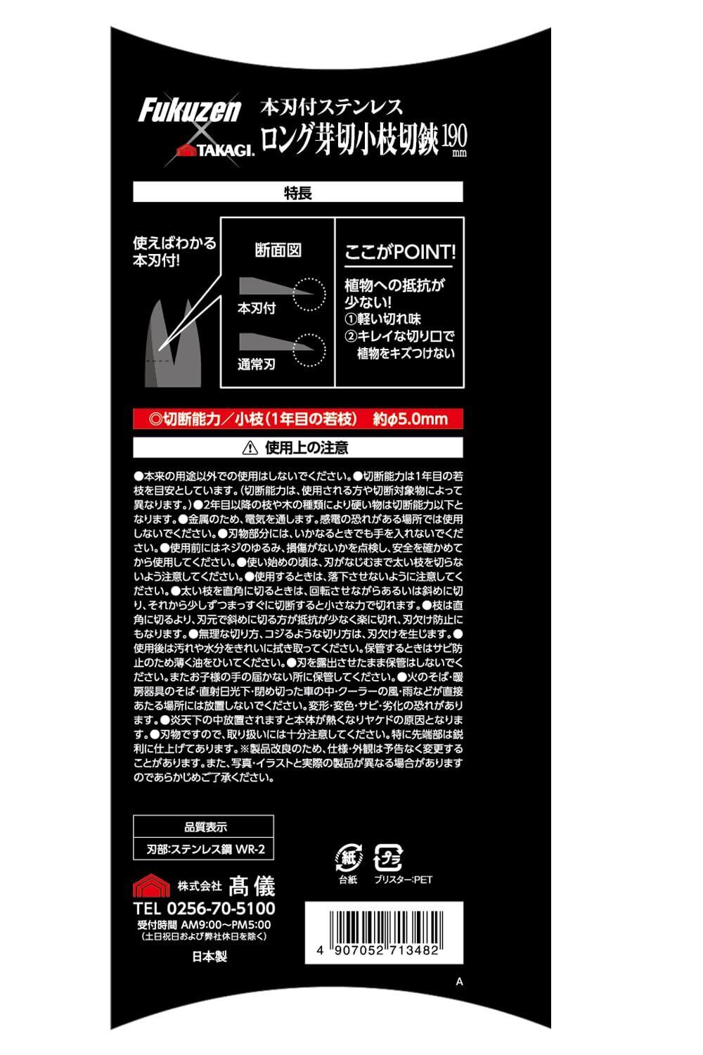 高儀(Takagi) 本刃付ステンレスロング芽切小枝切鋏 190mm