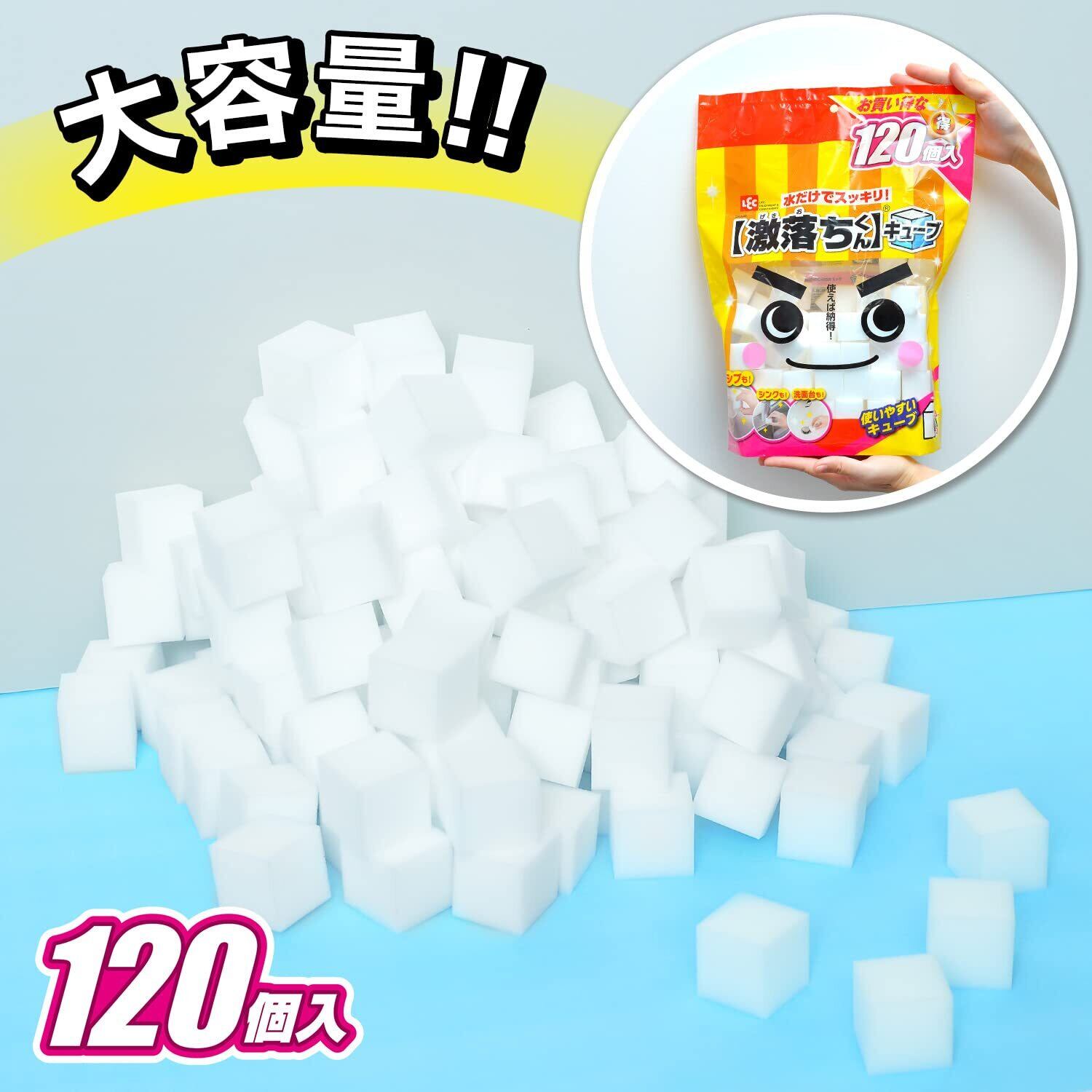 レック(LEC) 激落ちくん カット済み キューブ (3×3×3cm) 大容量 120個入 水だけで汚れ落とし 白