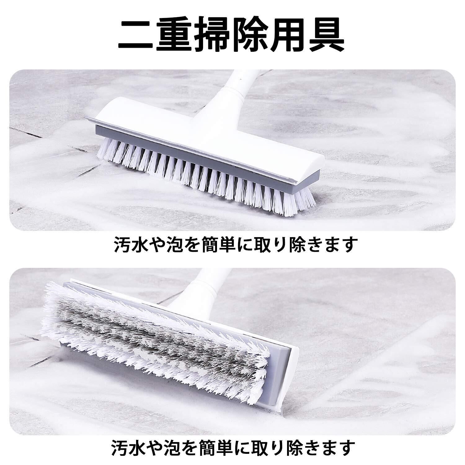 【2 in 1水切りワイパー&デッキブラシ設計】デッキブラシとしてだけでなく家庭を掃除することができます。水切りワイパーとしても活躍します。窓、壁、鏡、地面、天井を掃除できます。