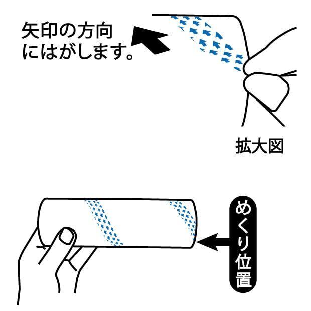 【どちらからでもめくれます 】粘着テープはうずまきカットのどちらからでもスムーズにめくれます。