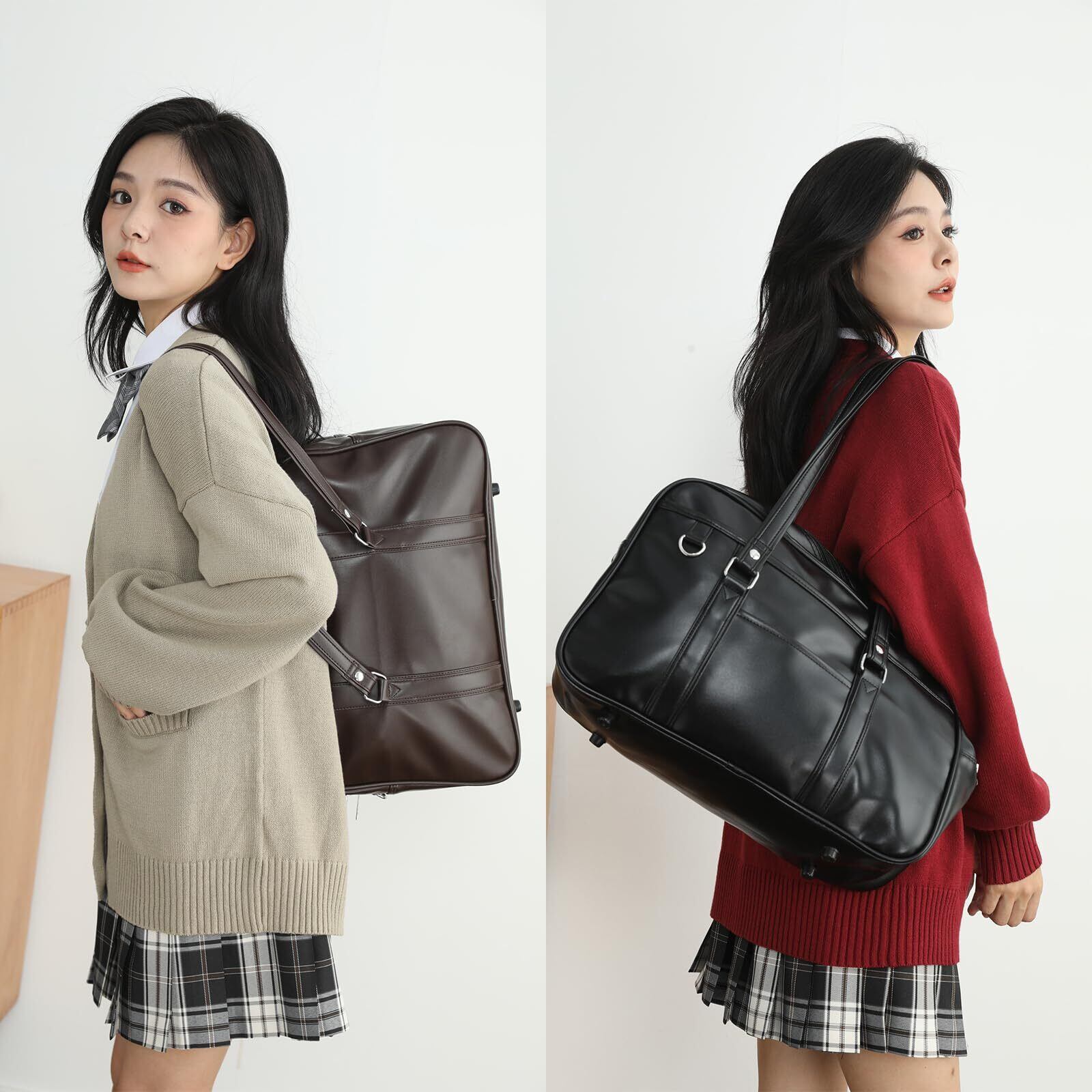 【在庫処分】zuevichn スクールバッグ 高校生 女子 ボストンバッグ 学生 大容量 合皮 男女兼用