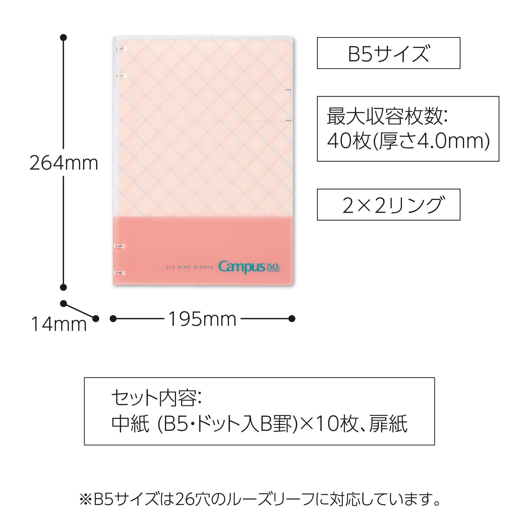 コクヨ キャンパス ノートのように使える バインダー 限定 50周年記念 B5 2X2リング ライトピンク ル-NP704-L2-LP