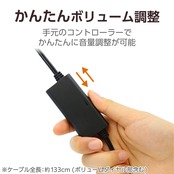 アンプ内蔵で、手元で簡単にボリュームを調整できる「ボリュームコントローラー」が付属しています。
