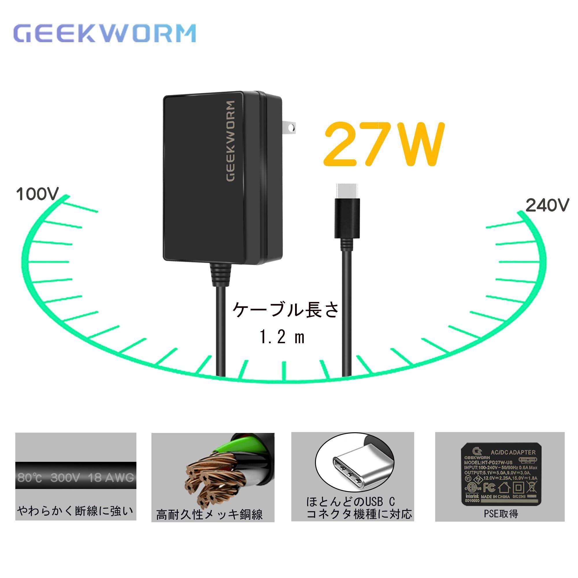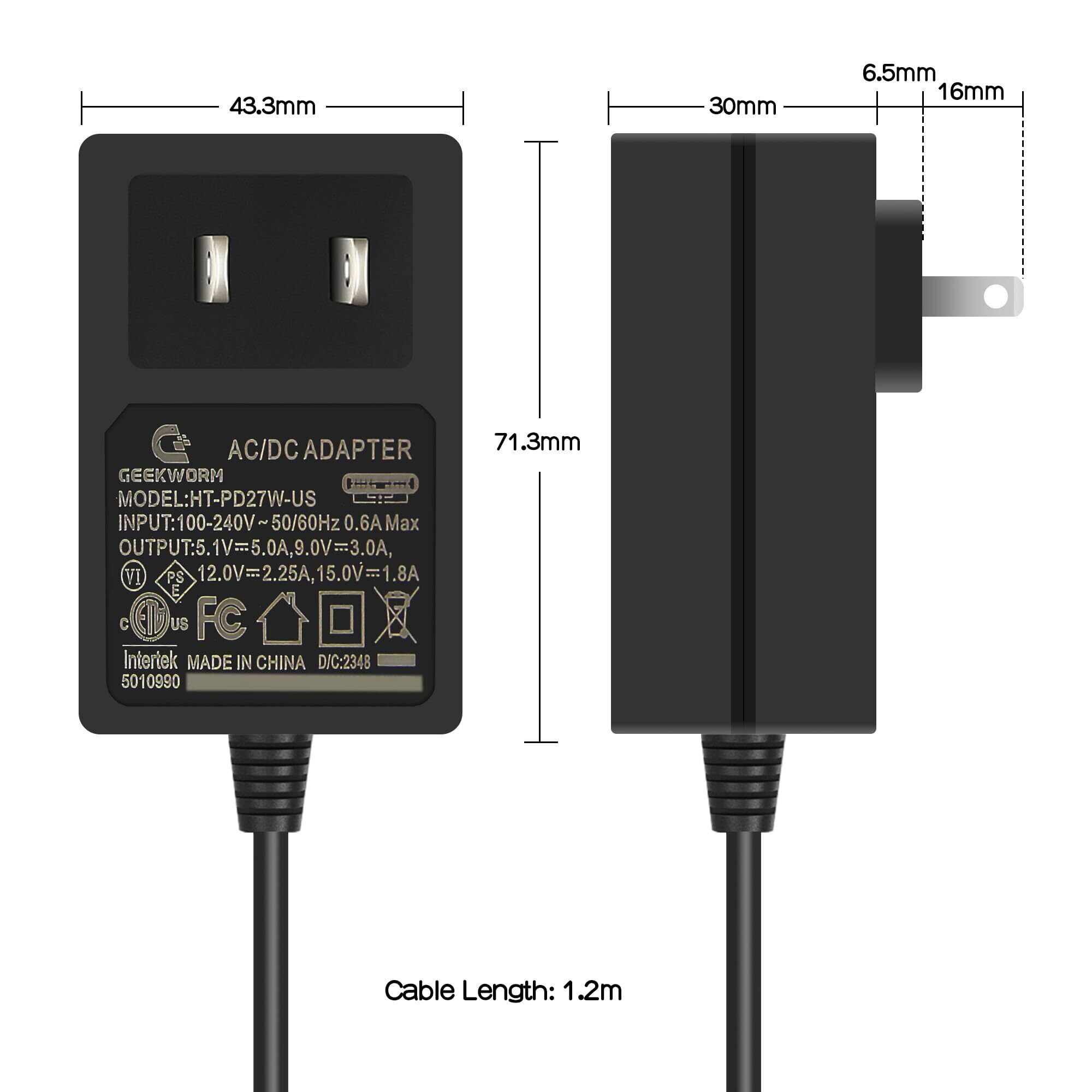 Geekworm USB-C 電源アダプター PD 27W Type C、Raspberry Pi 5 / Pi 4に適用