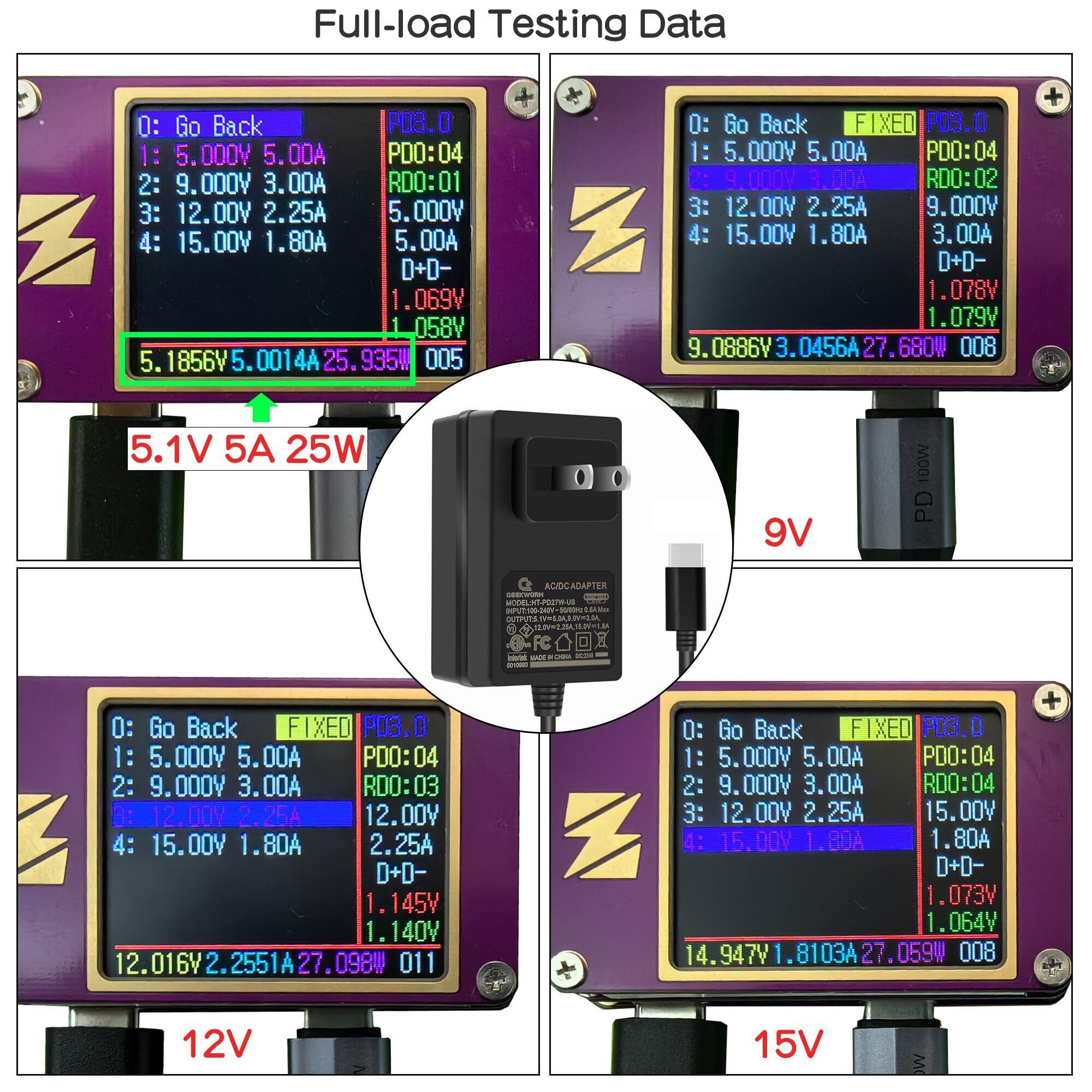 出力:5.1V/5A, 9V/3A, 12V/2.25A, 15V/1.8A;