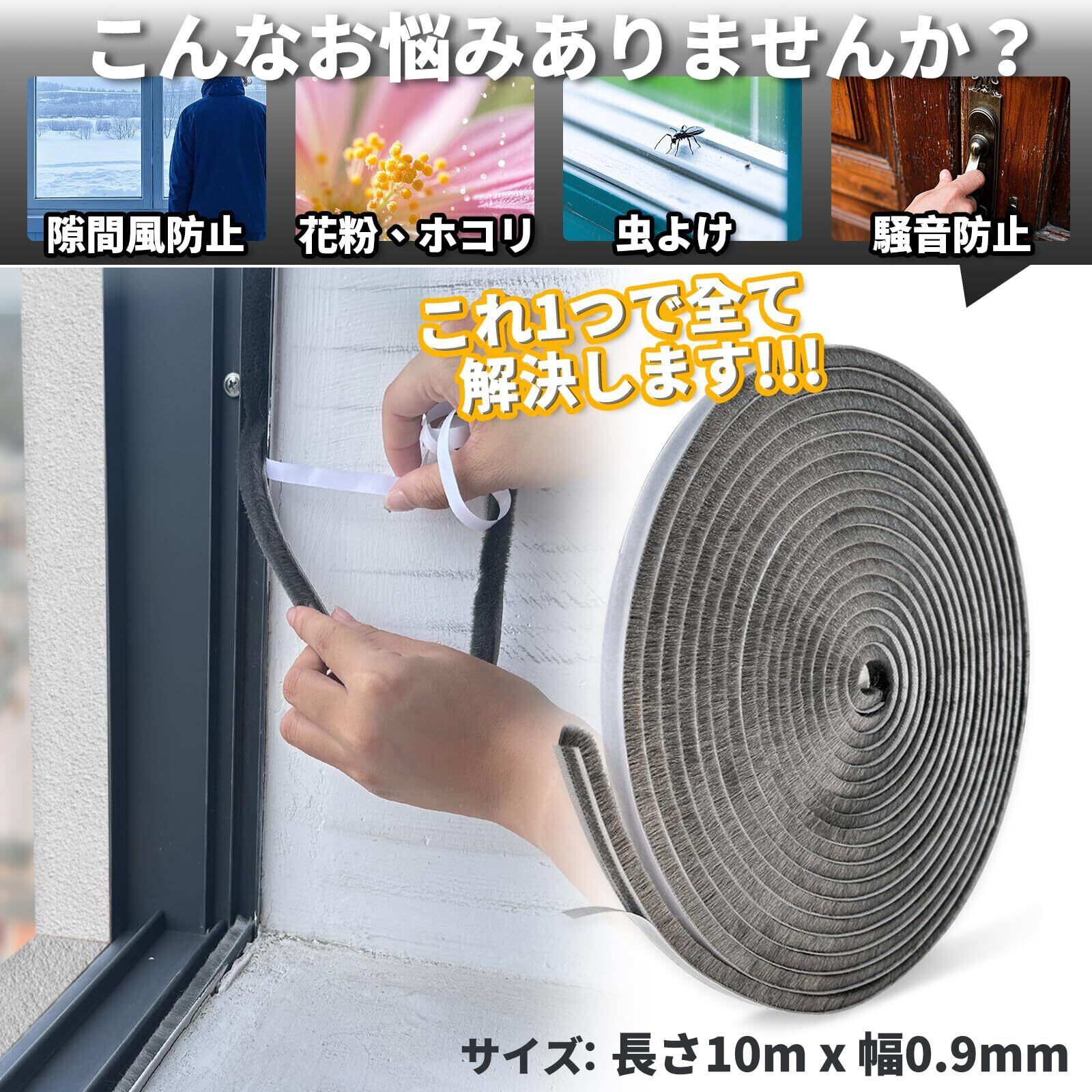 【新春セール】隙間テープ すきまモヘアテープ すきま風防止 隙間風防止テープ 網戸 引き戸 玄関 ドア 隙間対策 窓 サッシ隙間 すきまテープ 隙間対策 防音テープ 寒さ対策 騒音軽減 虫よけ 気密性UP 虫塵 花粉防止 エアコン効率アップ すきまモヘア型 色:グレー サイズ:9mm×10m×毛足長さ9mm