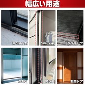 【防音/防虫/防風/防塵】起毛タイプの隙間テープなので、引戸やドアのすき間に貼ることによって、ホコリ、花粉、虫などの侵入を防ぐことができます。隙間に貼って防音対策、 玄関ドア、窓、サッシ、引戸などのすき間に貼ることで外からの風を防ぎ、不快な戸当たりの音の解消します。