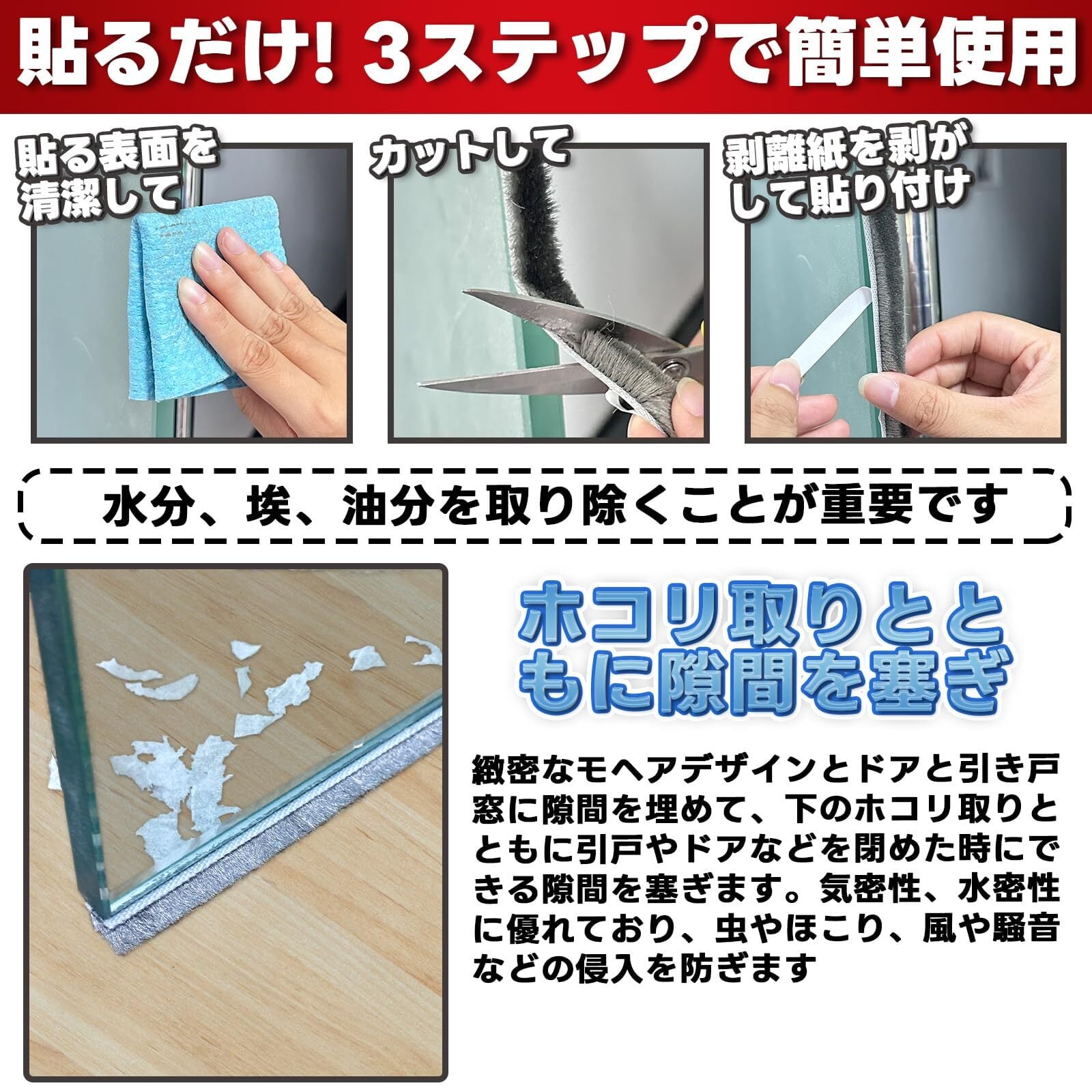 【高密度で毛足長い隙間モヘアテープ】この毛の密度が長い隙間モヘアテープは、室内ドアや玄関ドア、引き戸や木製窓、シャッター、障子、雨戸などすき間にもよく使用されます。すき間風をストップするとともに、クッションによりドアを閉める際の音も静かにする防音効果のある製品。それに水、カビ、摩耗に強く、復元力に優れ、耐久性が抜群で、長期の使用にも安定した性能を保ちます。