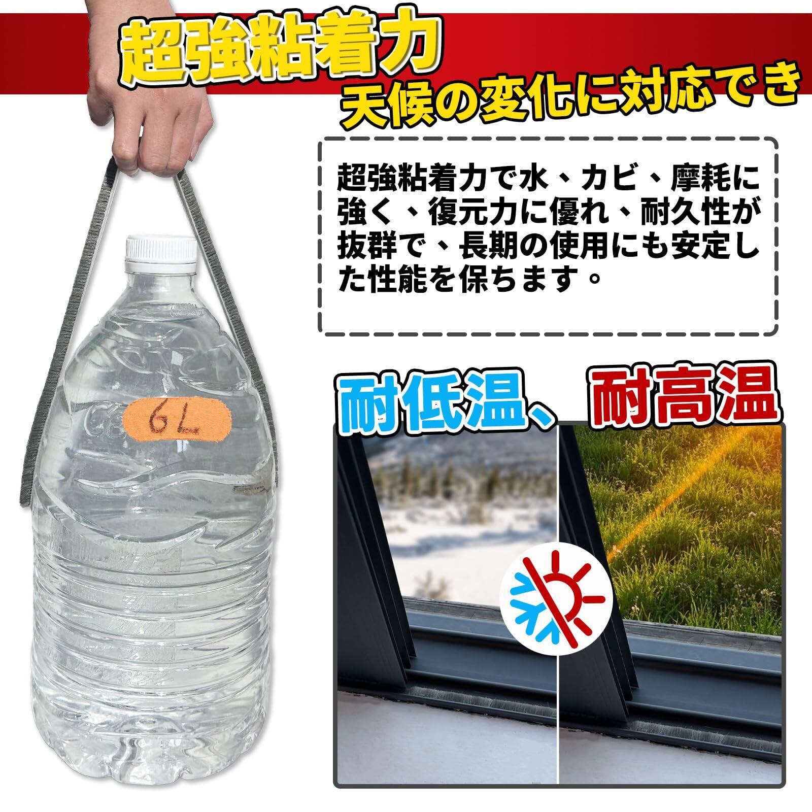 【丈夫耐久・使用簡単】隙間風防虫テープは高品質PP繊維素材を採用し、耐候性に優れて、もっと良い気密効果に達します。また、テープには超強力アクリル系の粘着剤が付いて、簡単に貼ることができ、粘着力が良く、剥がしにくいです。