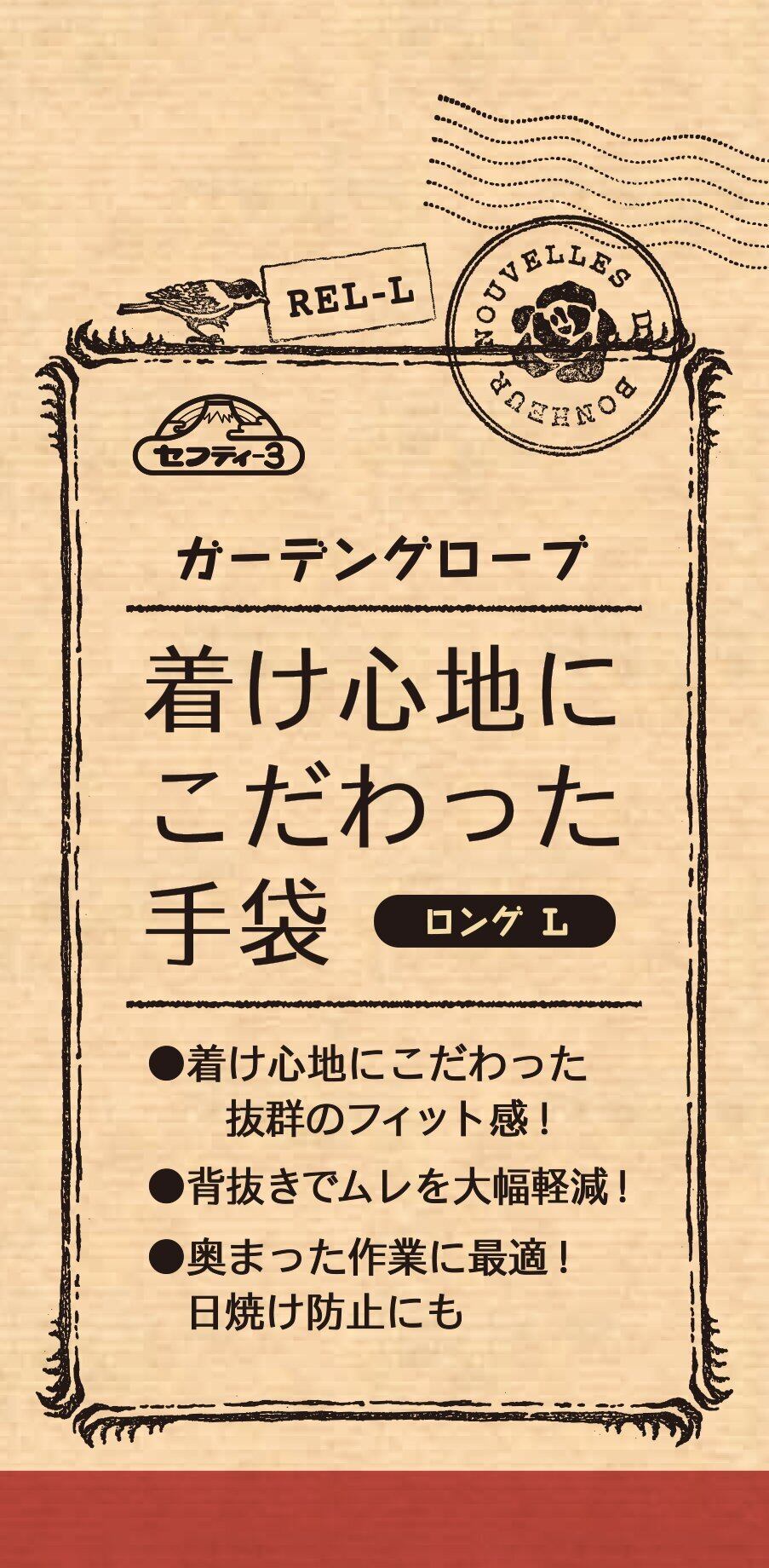 セフティー3(Safety-3) ガーデングローブ 着け心地にこだわった手袋 レッド ロング L REL-L