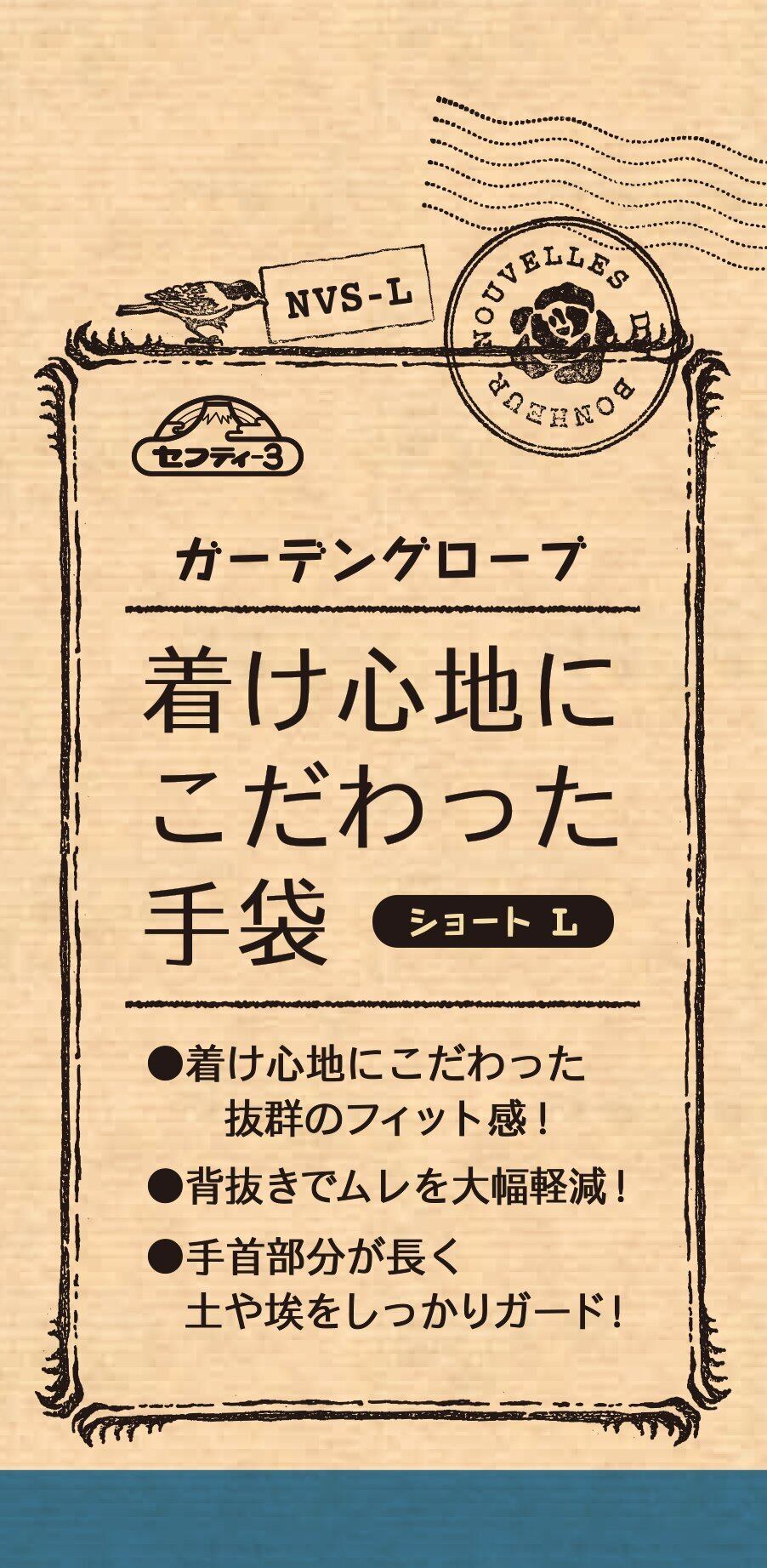 【2022最新】セフティー3(Safety-3) ガーデングローブ 着け心地にこだわった手袋 ネイビー ショート L NVS-L