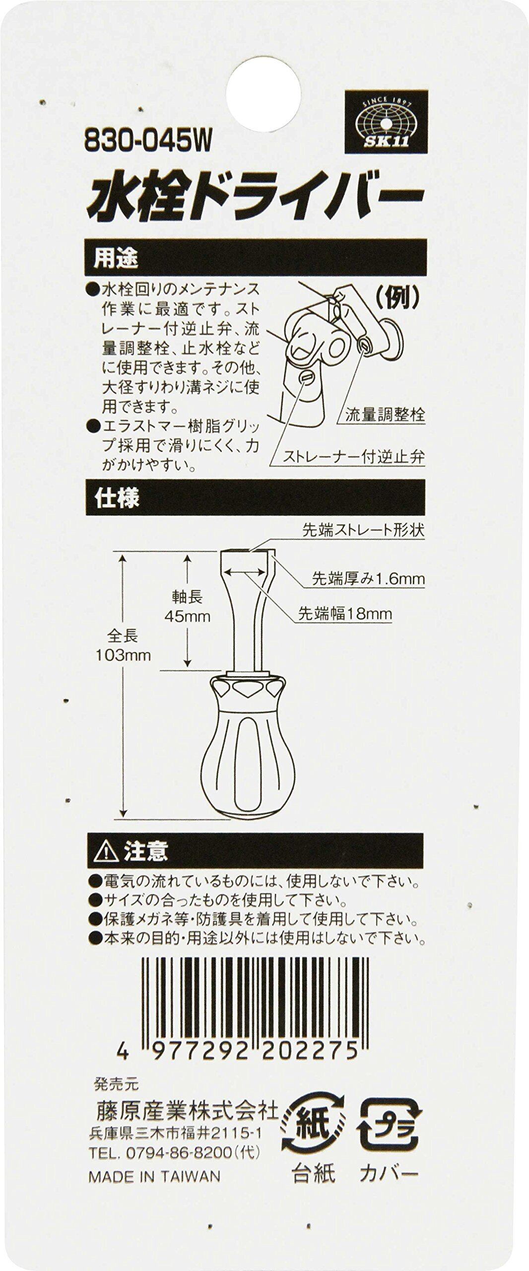 【人気商品】SK11(エスケー11) 水栓ドライバー 先端ストレート形状 軸長45mm スタビータイプ NO.830-045W