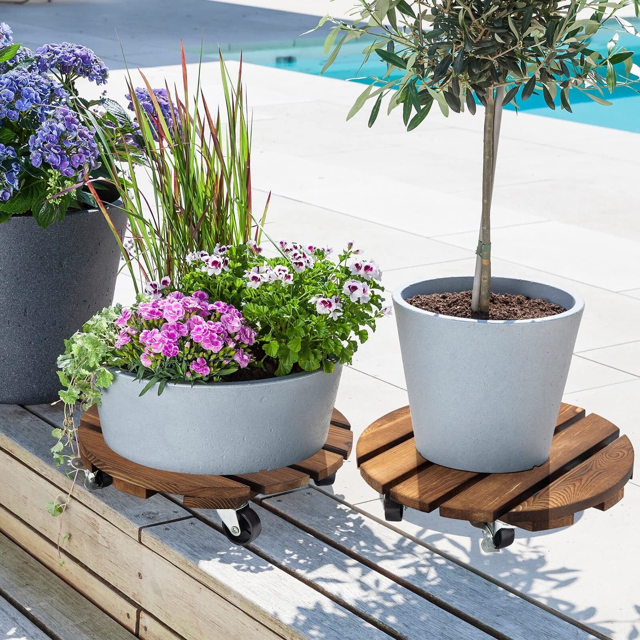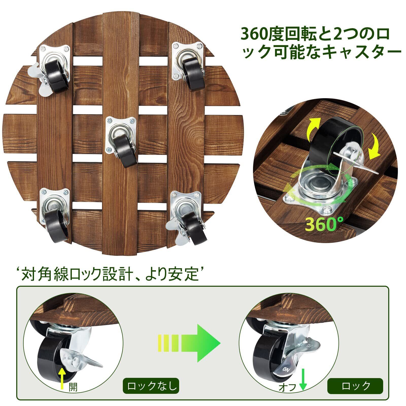 【特価セール】植木鉢台Yangbaga2個セット植木鉢 受け皿 可動式 丸い木の植木鉢トロリー 360°ロック可能なキャスター フラワーポット、ジューシーポット用 庭用(30*8cm) | allstore3