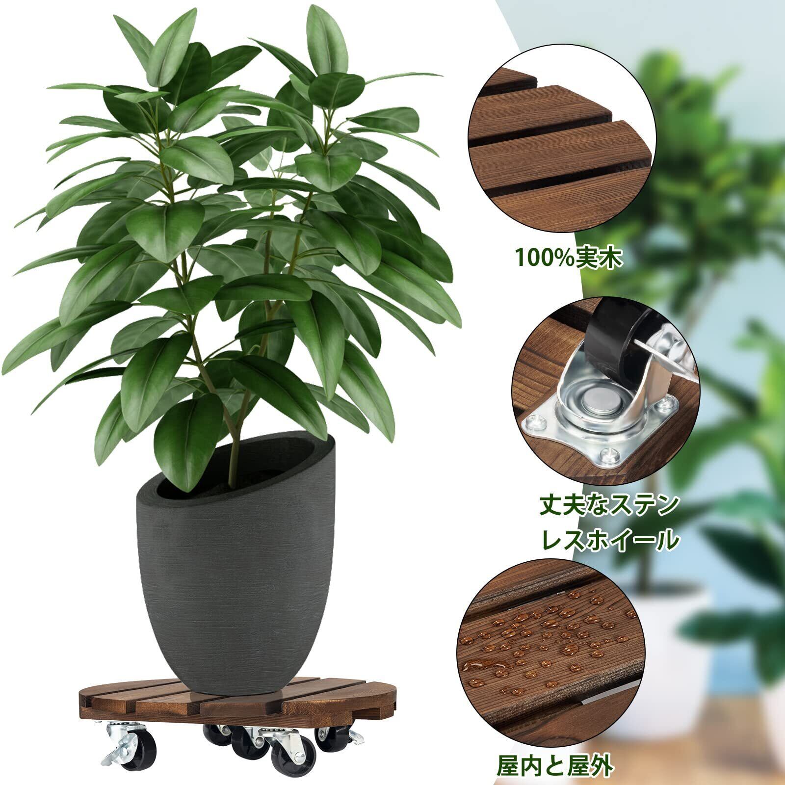 植木鉢台Yangbaga2個セット植木鉢 受け皿 可動式 丸い木の植木鉢トロリー 360°ロック可能なキャスター フラワーポット、ジューシーポット用 庭用(30*8cm)