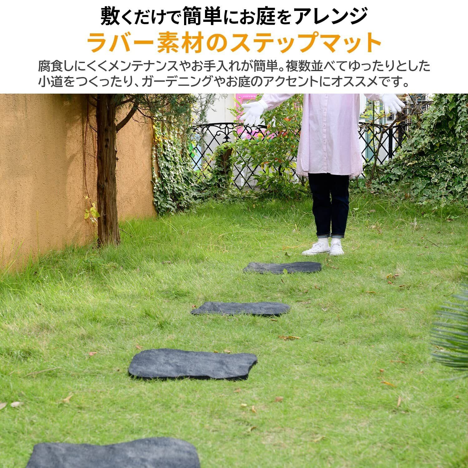 【特徴】敷くだけで簡単にお庭のアレンジができるステップマットです。ラバー素材を使用しているので、腐食しにくくメンテナンスやお手入れが簡単なのが特徴です。複数並べてゆったりとした小道をつくったりと、ガーデニングやお庭のアクセントにオススメです。