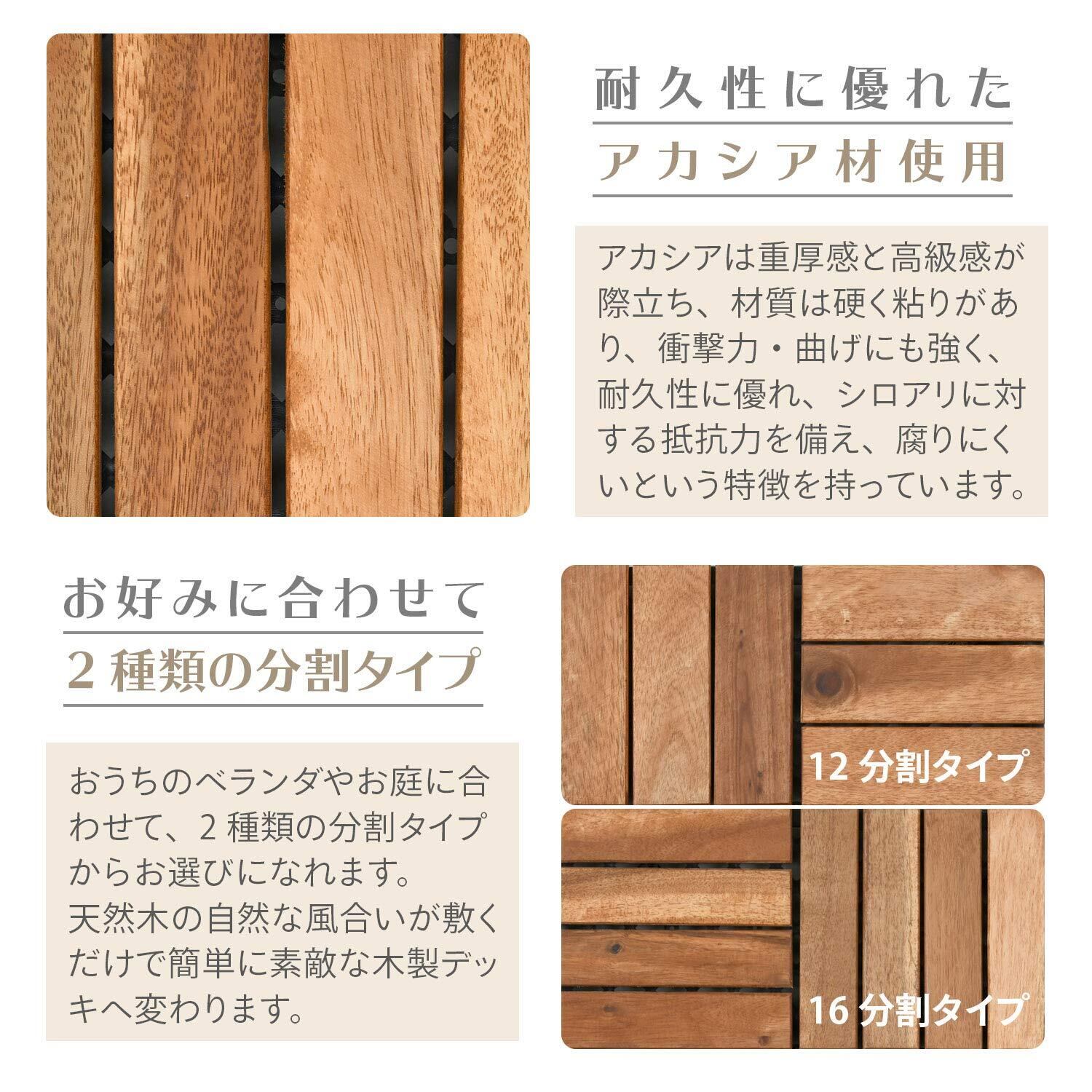 山善(YAMAZEN) 天然木ウッドパネル ガーデンタイル (1枚バラ売り) 天然木アカシア材 NAJT-16(BR)
