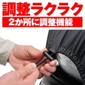 【仕様1】ストレッチ生地、2ケ所のゴム調整、6ケ所の樹脂フック固定仕様だから、荷物の形状に合わせて柔軟に固定することができます。