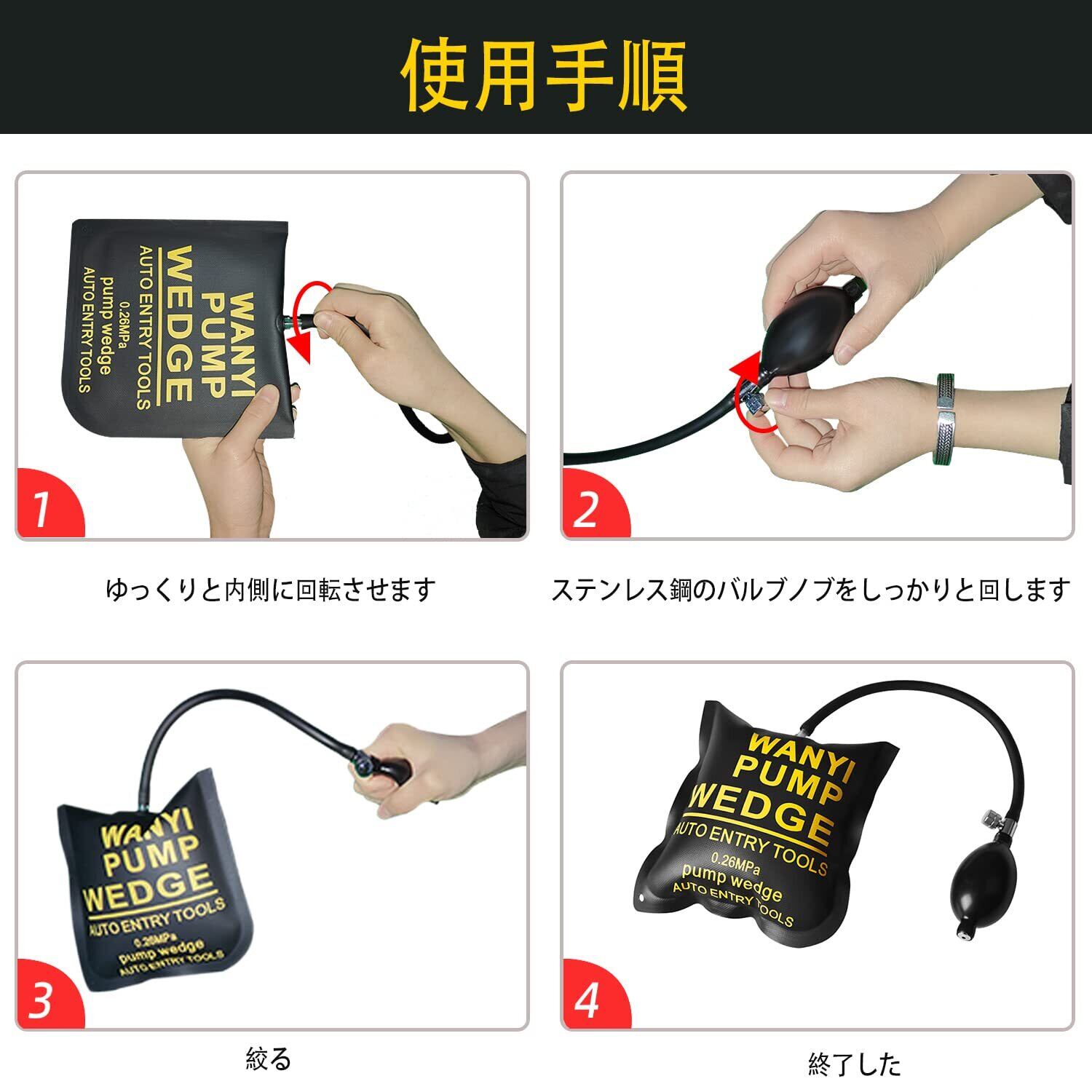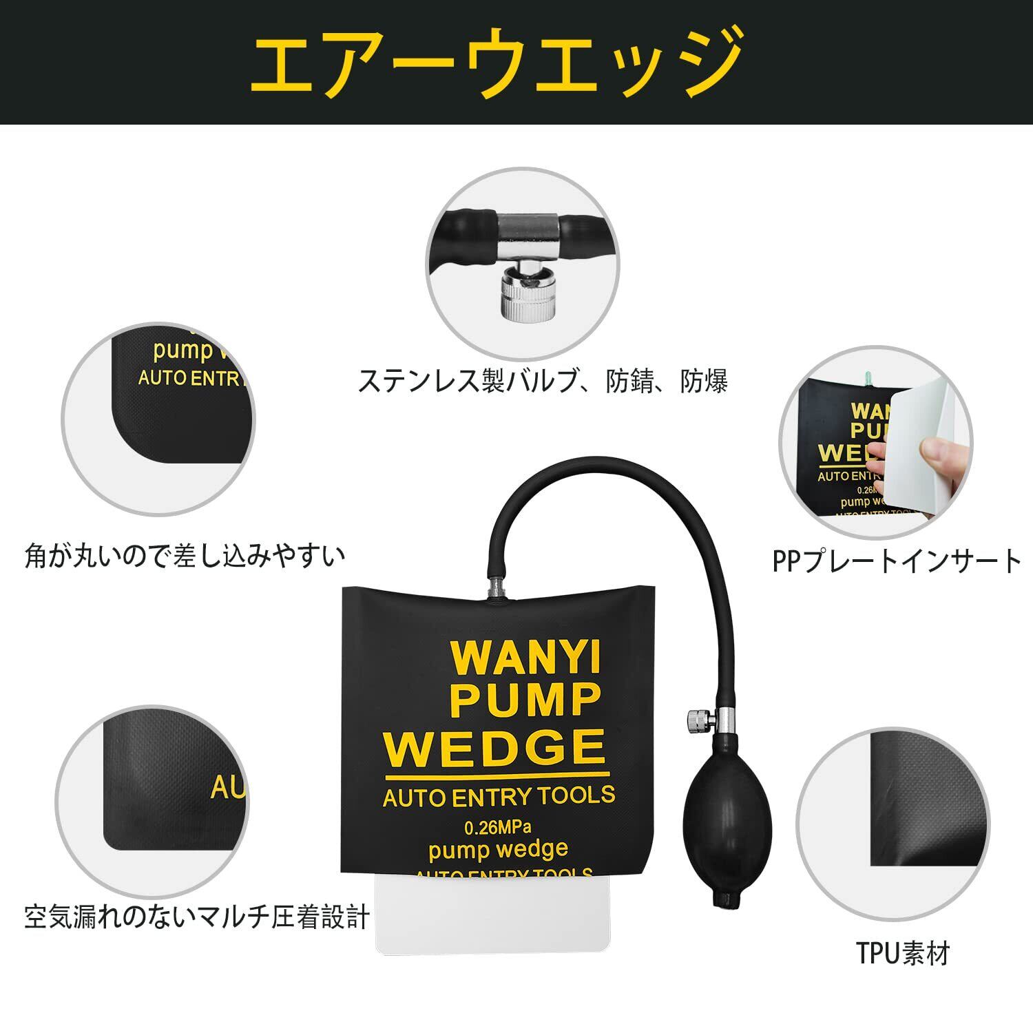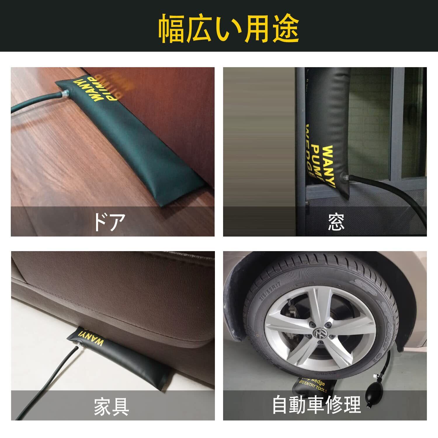 YummyBuy エアージャッキ 強度 TPU製品 ジャッキアップ エアー 300KG 対応エアーウエッジ ポンプ ドアロック解除 補助工具 2点セット(正方形)