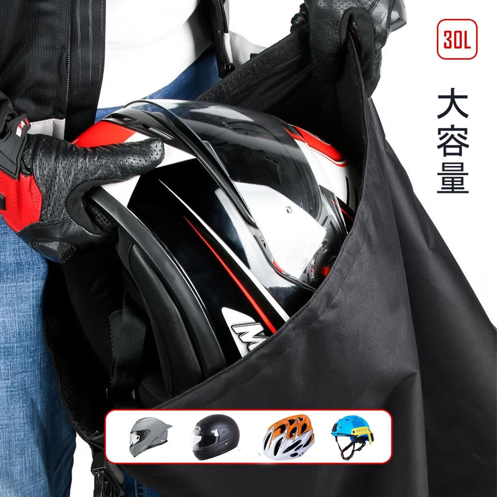 DFsucces ヘルメット バッグ バイク用 パスワードロック 保護 バイクヘルメット 防水リュック 柔らかい 耐引裂性 大容量 多機能収納 サッカー バスケット 荷物 小物収納 通勤 通学 旅行 (30L-ブラック)