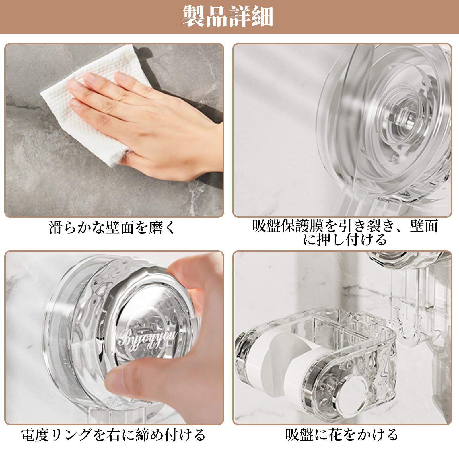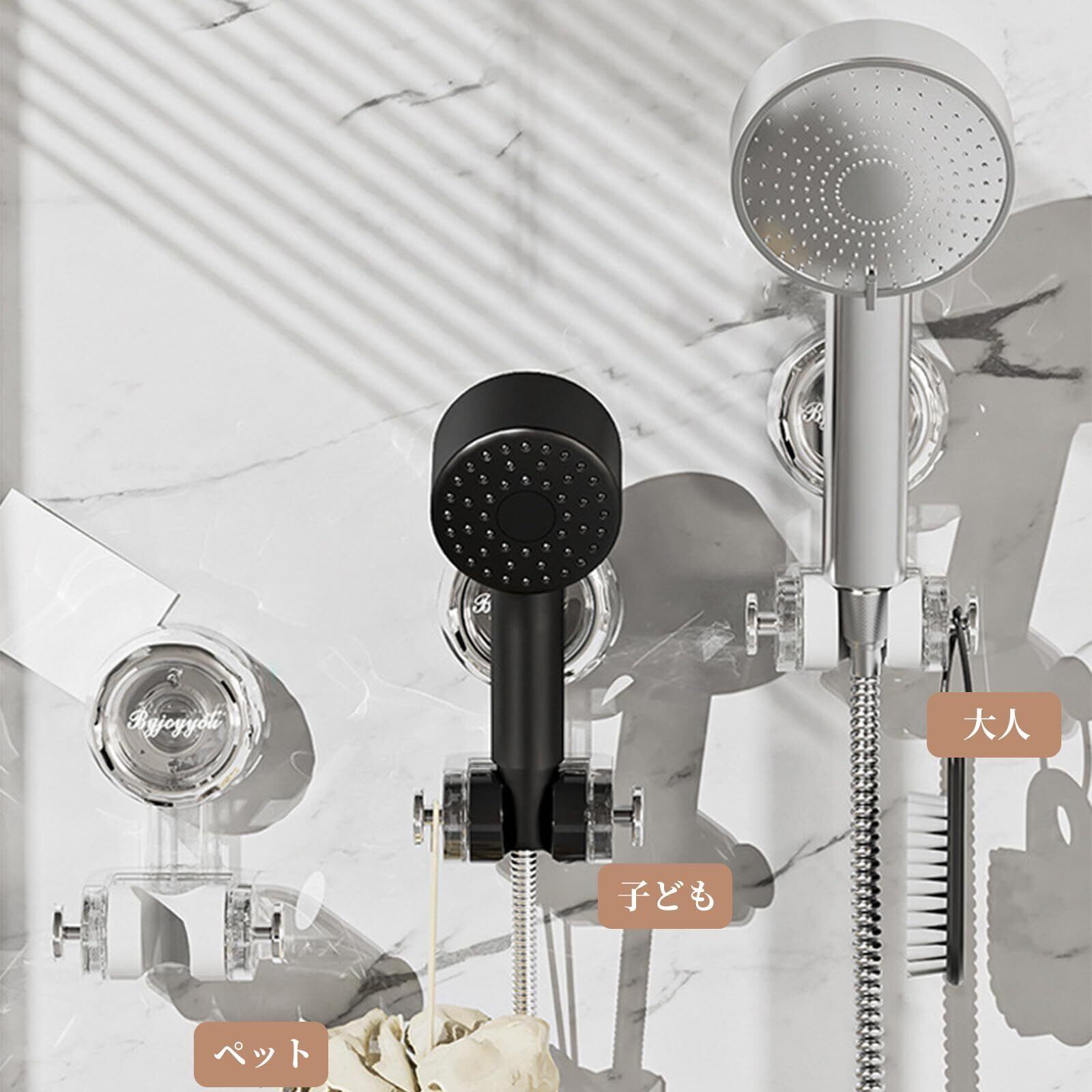【強力真空吸盤】: シャワーフック高強度の真空吸盤デザインを採用し、フックがしっかりと固定され、シャワーヘッドの重さを楽に支えられ、安全に使用できます。