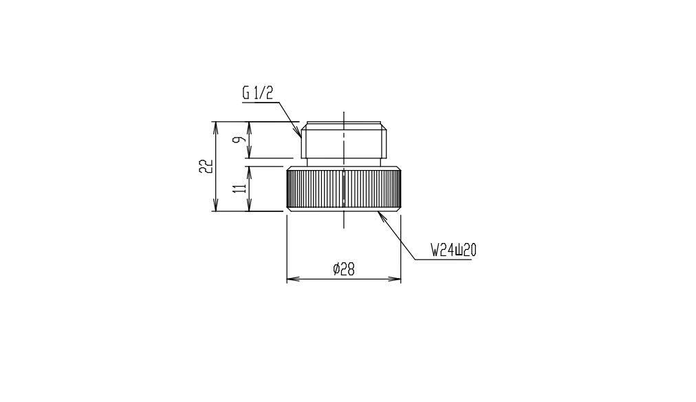 サイズ:B寸法22㎜ ネジD(G1/2) ネジE(W24山20)