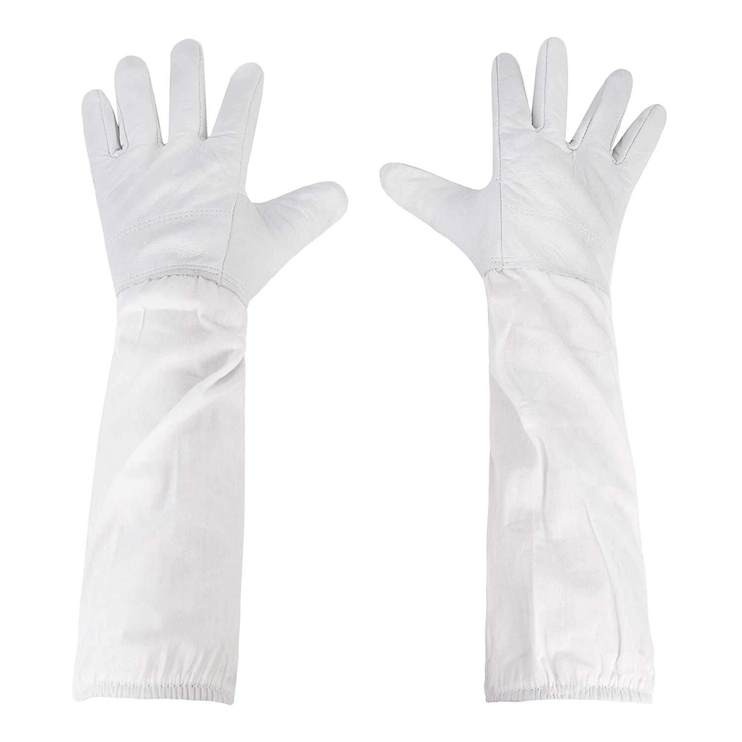 [作業用手袋] 養蜂から草刈りなど庭仕事や農作業まで、肘あての長い革手袋は手肌をしっかりとガードしてくれて、蜂や蚊、アリなどの害虫を駆除できるのにトゲ防止する作業用グローブです。