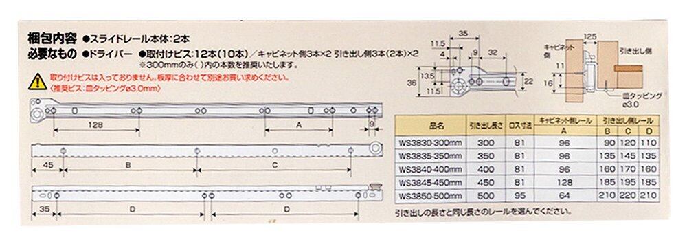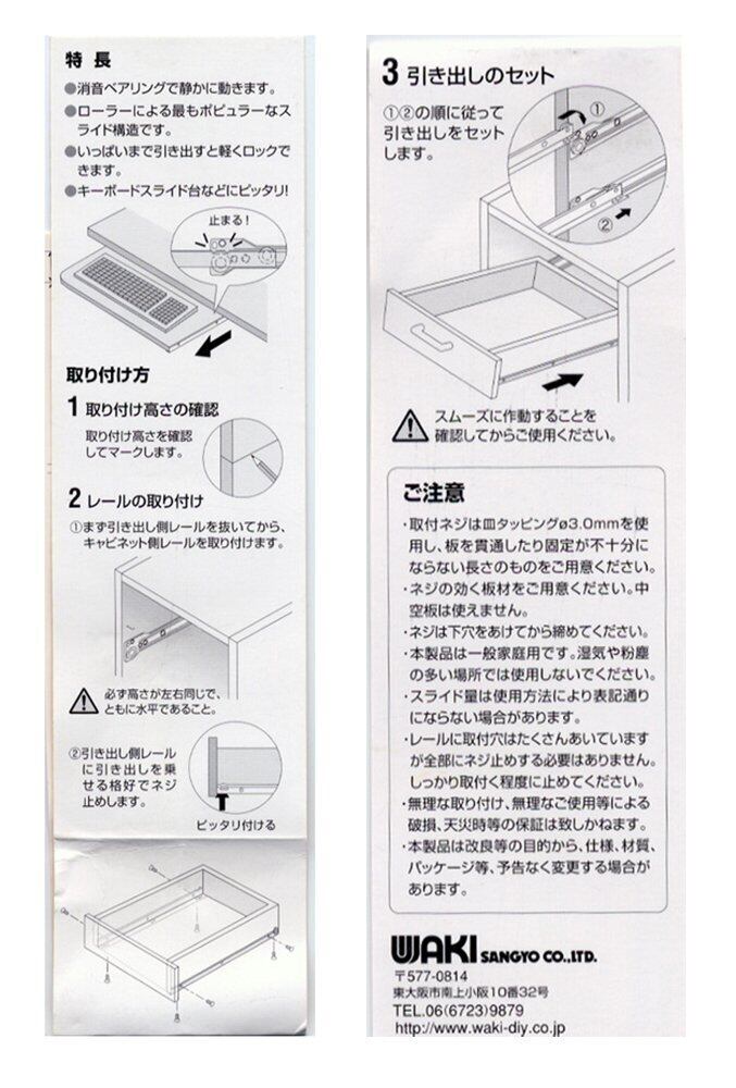 注意:引き出しの長さと同じ長さのレールを選んでください。